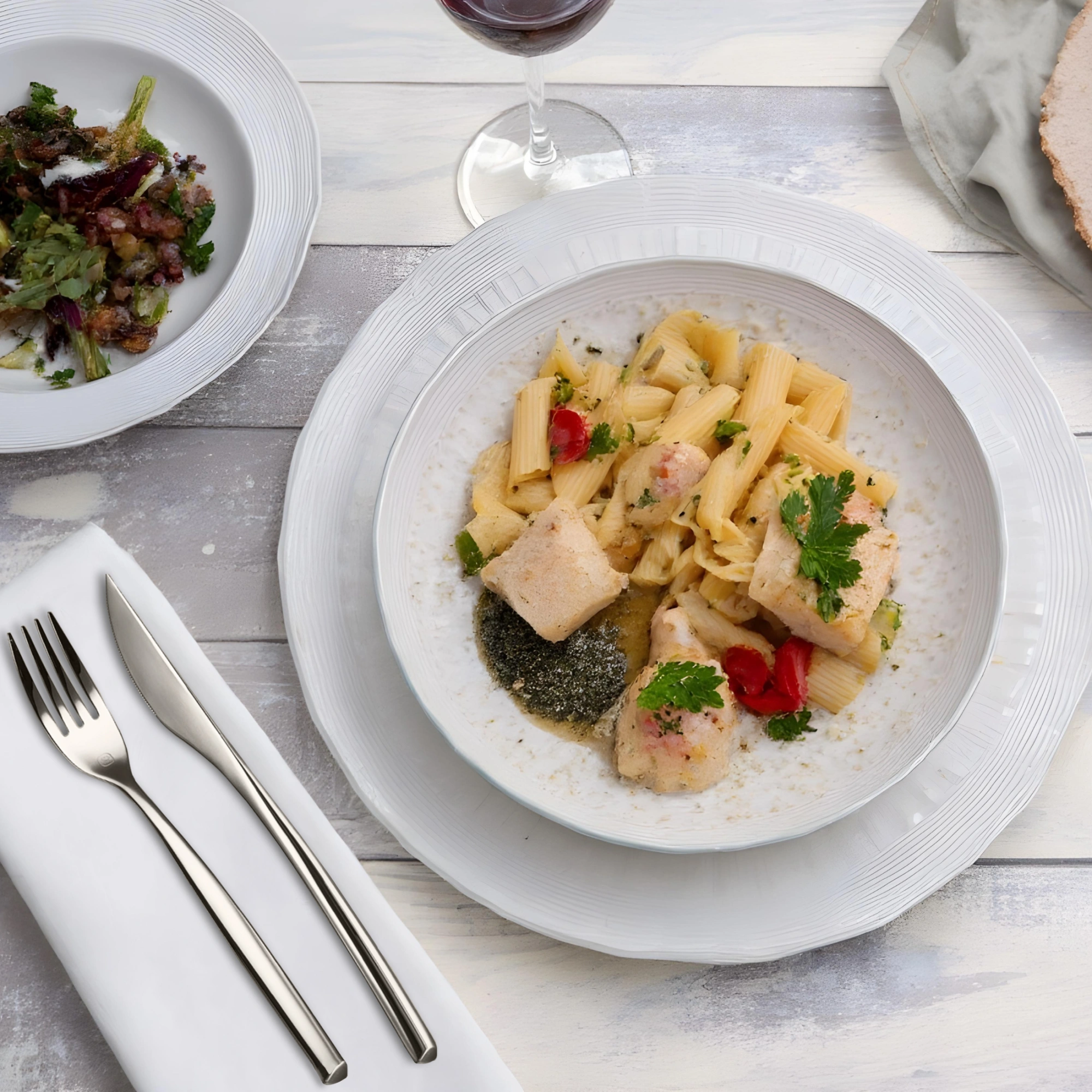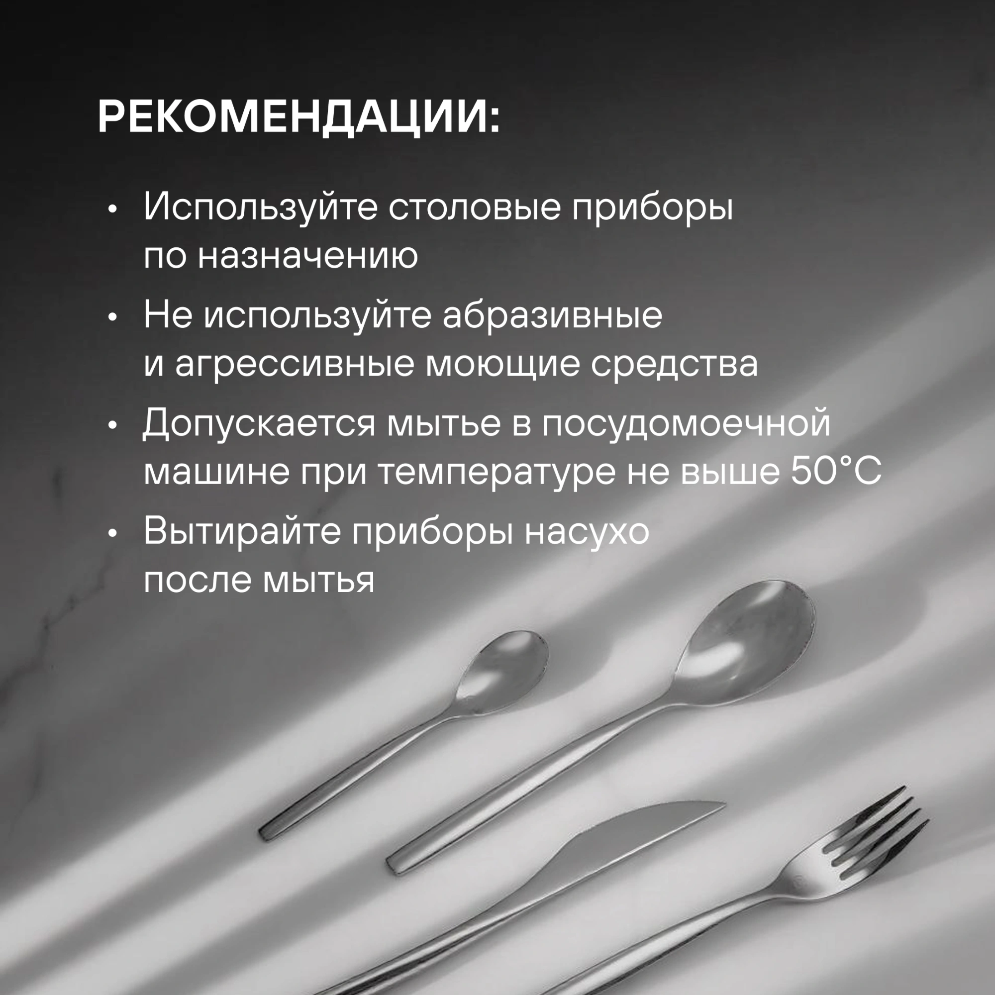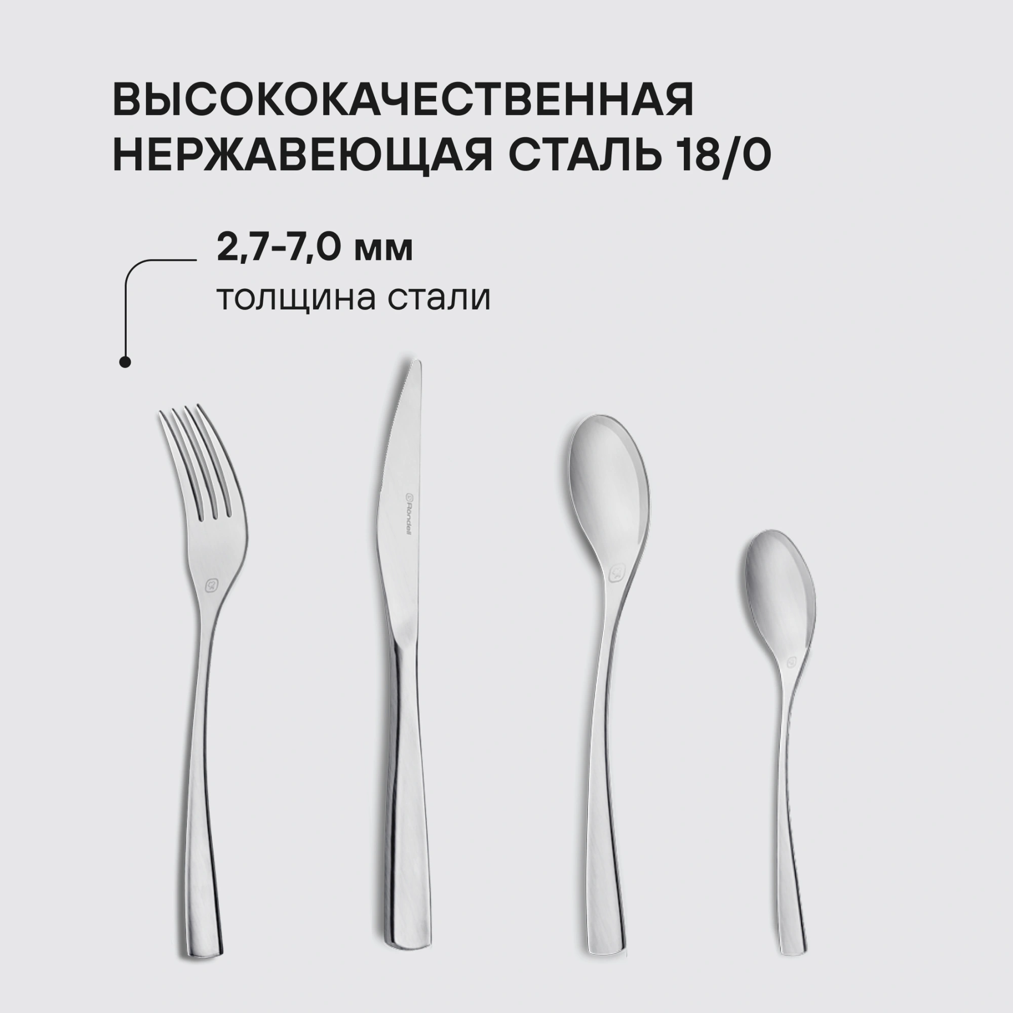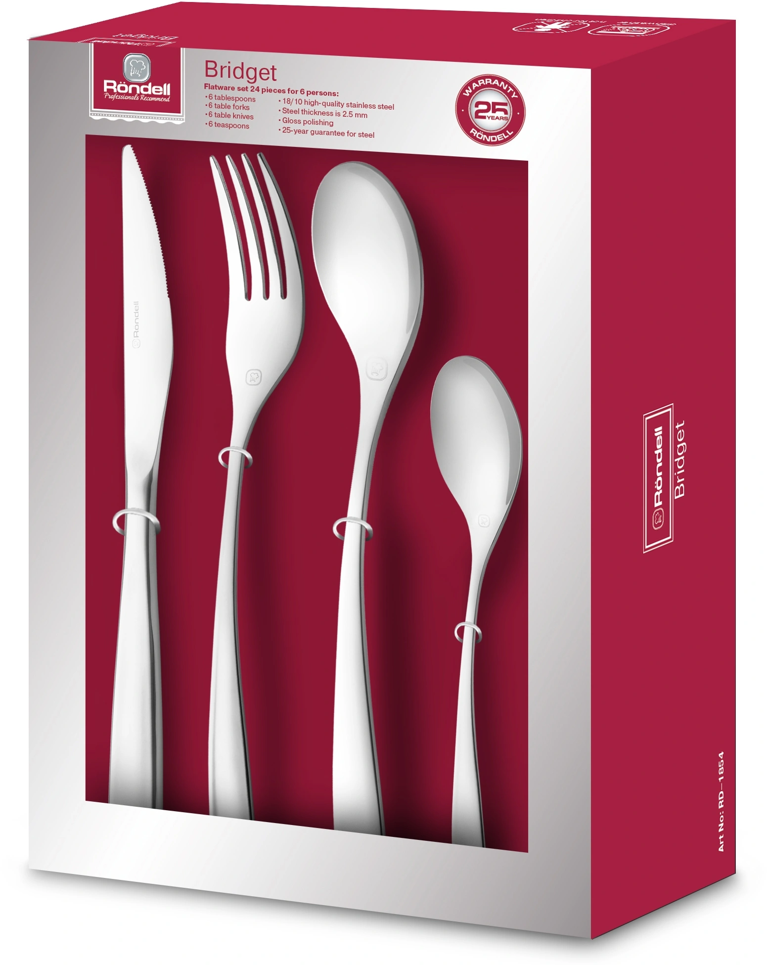 Столовый набор Bridget – замечательный выбор для тех, кто хотел бы красиво оформить как праздничный ужин, так и повседневную трапезу. Изделия, сделанные из этой стали, не подвержены коррозии, устойчивы к органическим кислотам, не изменяют вкус и запах продуктов, долговечны, за ними легко ухаживать.