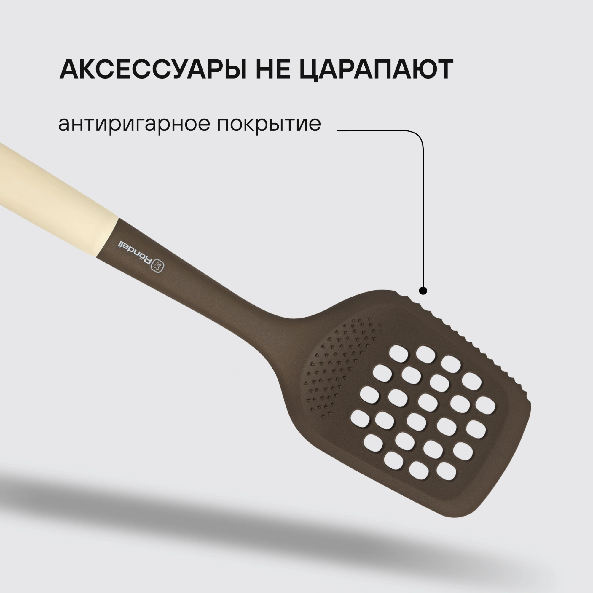 Наконец, стоит отметить еще один приятный «бонус» коллекции Mocco&Latte: в ее состав входят половник, кулинарная лопатка, ложка и картофелемялка, выполненные в общем стиле. Все эти кухонные аксессуары оснащены ручками эргономичной формы, которые обеспечивают их комфортное и безопасное использование.