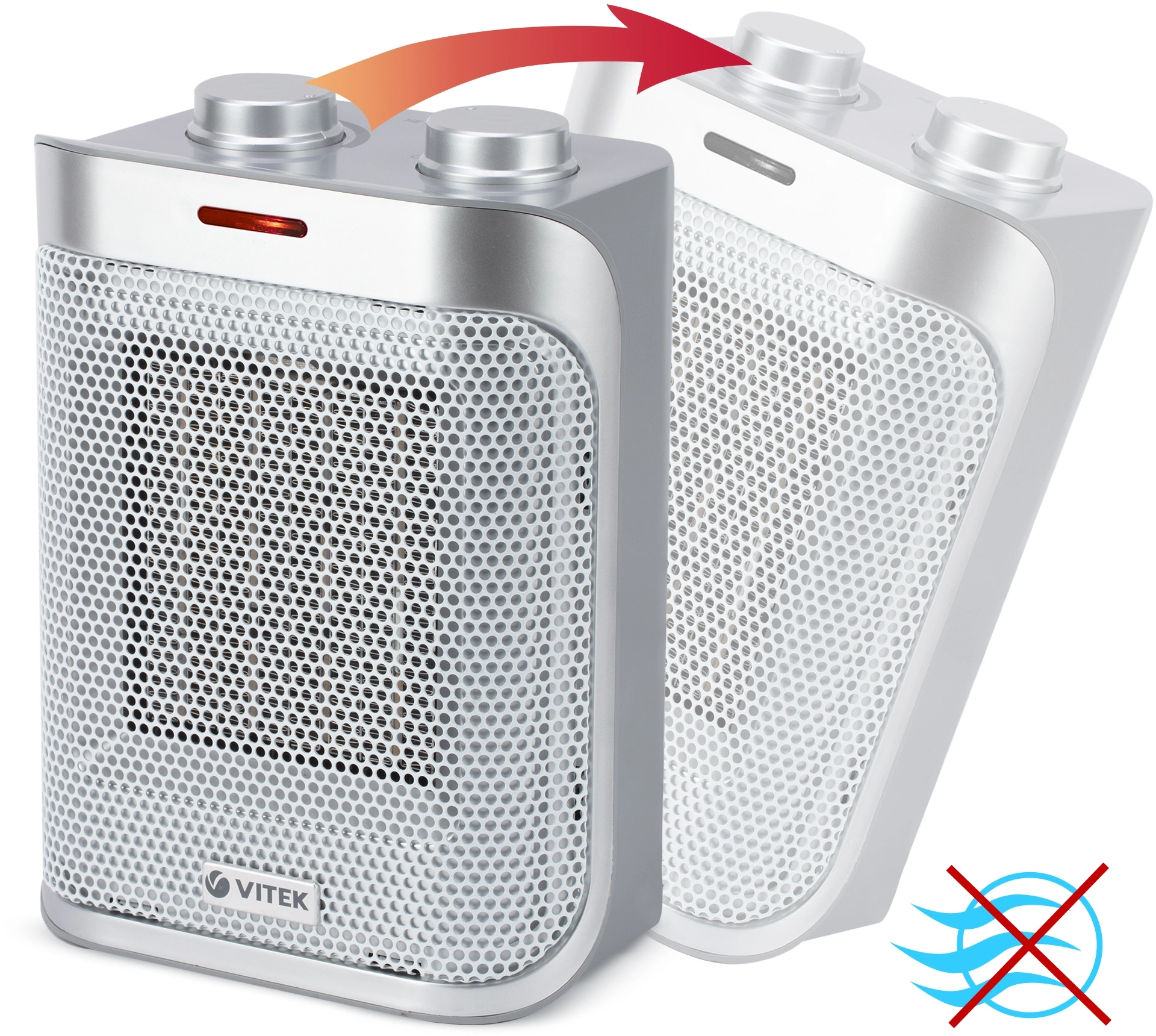 Тепловентилятор VITEK VT-2050 имеет оригинальный внешний вид. Устройство используется для подачи холодного или горячего воздуха на площади 20 м². Безопасен в использовании благодаря датчикам отключения при перегреве и опрокидывании.