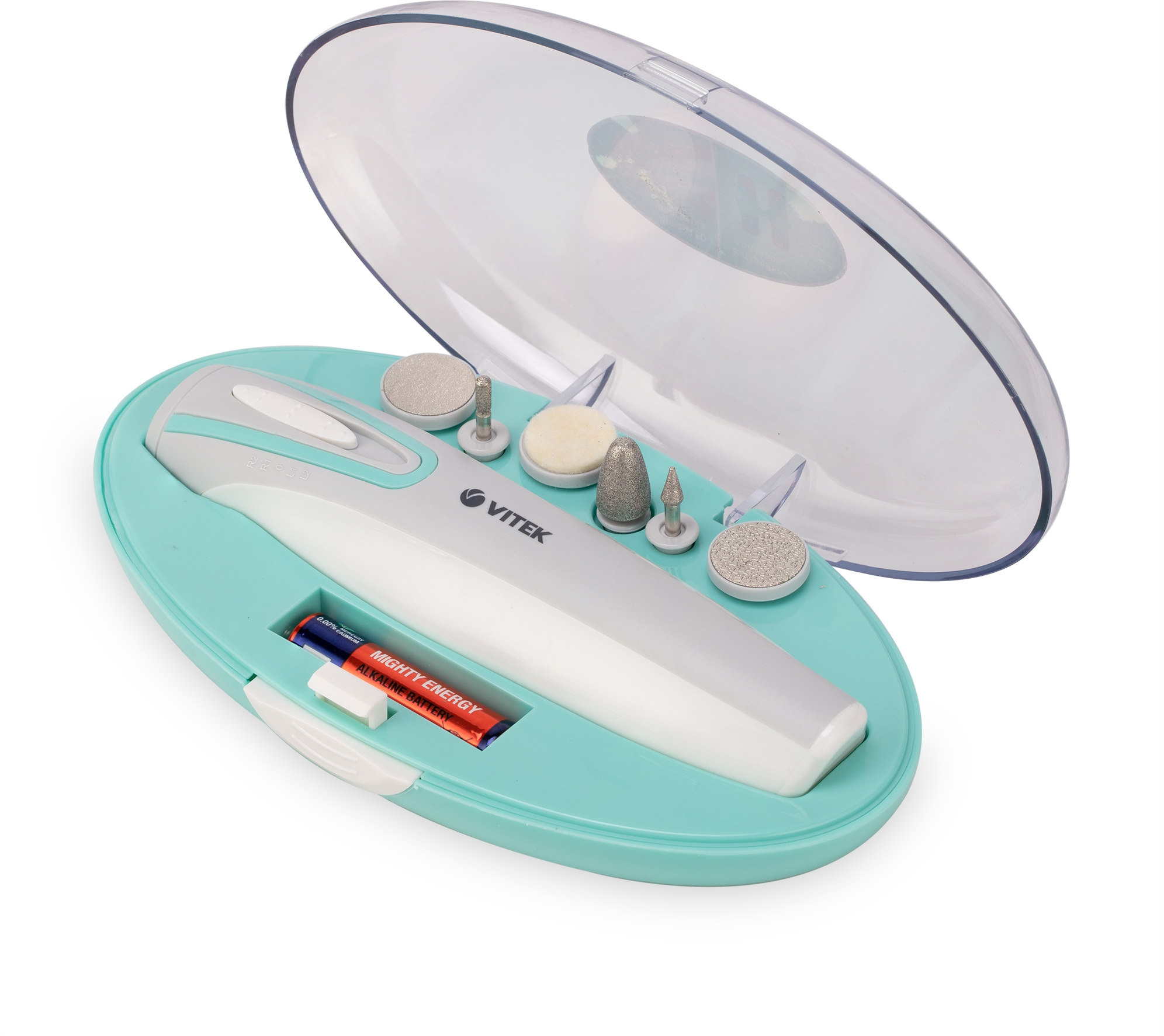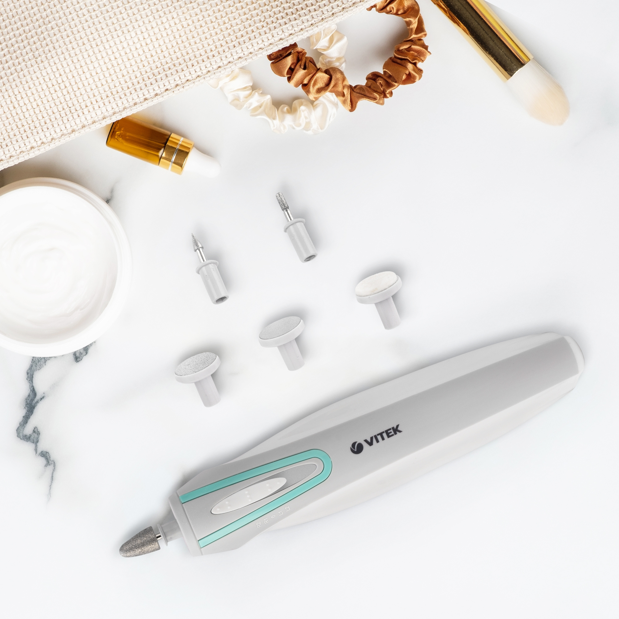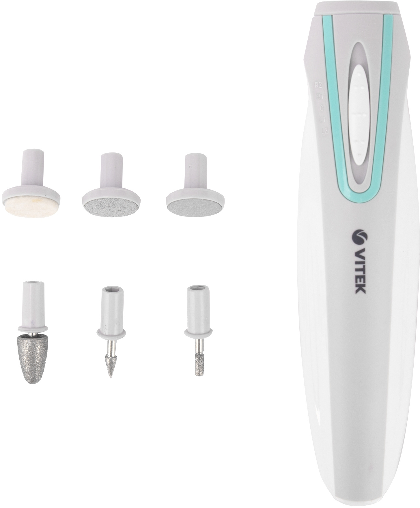 С этим устройством вы сделаете безупречный маникюр и педикюр у себя дома! В комплекте — 6 насадок для придания формы ногтям, удаления кутикулы и обработки кожи. Прибор не займет много места, поэтому его удобно брать в дорогу.