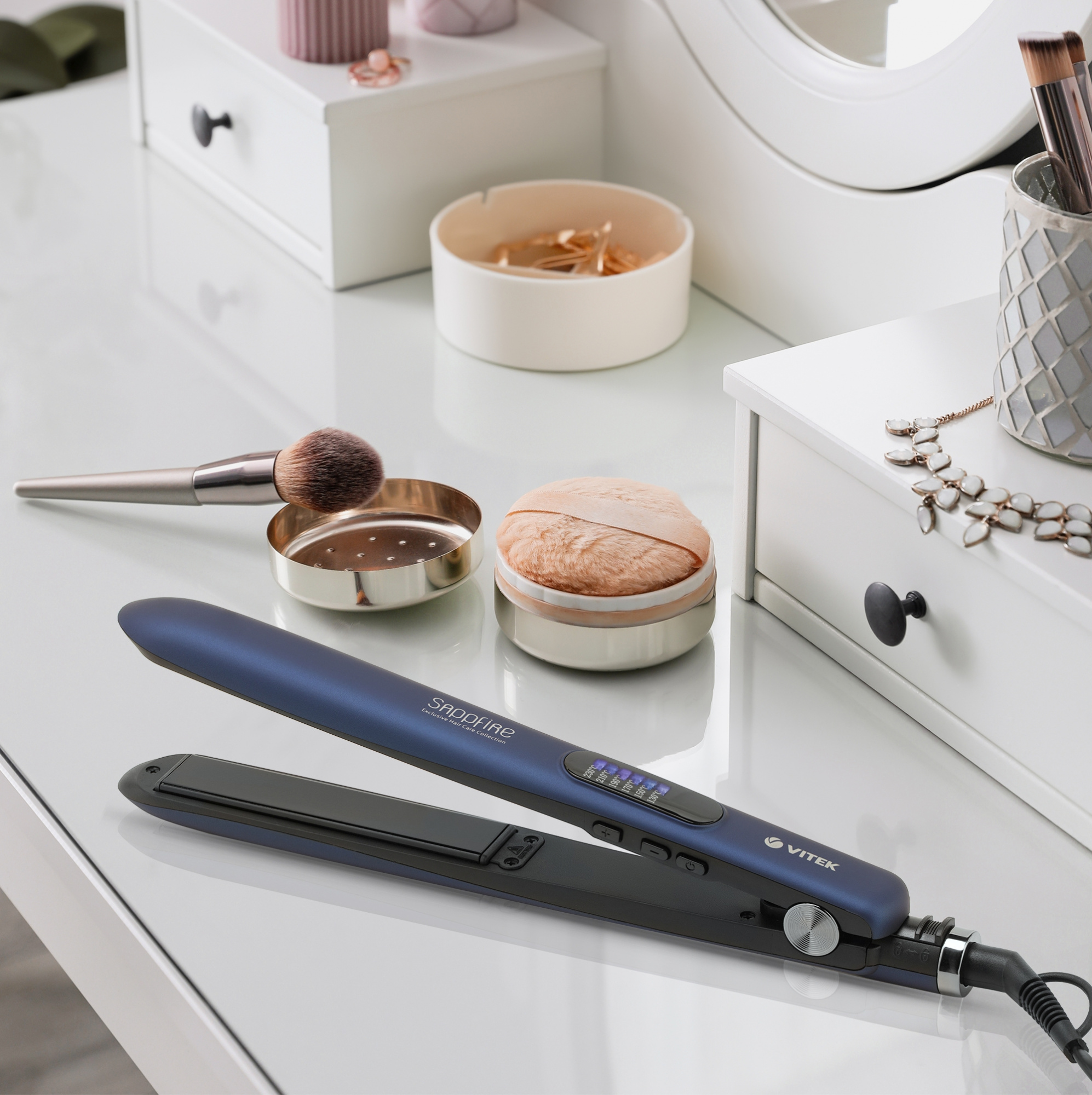 Уложить волосы в гладкую прическу поможет выпрямитель VITEK VT-2230. Он имеет шесть температурных режимов — от 130°С до 230°С: информация о выбранном варианте отражается на LED-дисплее. Пластины прибора размером 24,55 х 125 мм имеют покрытие Tourmaline Ceramic, благодаря которому тепло равномерно распределяется по поверхности, а статическое электричество снимается. Кроме того выпрямитель оснащен технологией PTC Heating, быстро стабилизирующей нагрев, что способствует бережному отношению к волосам и сохранению их здоровья. Важным достоинством прибора является и особая система крепления пластин на пружинах (Floating plates), благодаря чему двигаются плавно и деликатно удерживают пряди, без защемления. Пользоваться выпрямителем очень удобно, благодаря вращающемуся на 360° шнуру длиной 1,8 м. После использования заблокируйте ручку и уберите прибор на полку или подвесьте за специальную петельку. Купить выпрямитель VITEK VT-2230 — значит, подарить себе возможность создавать красивые прически дома и одновременно заботиться о здоровье волос.