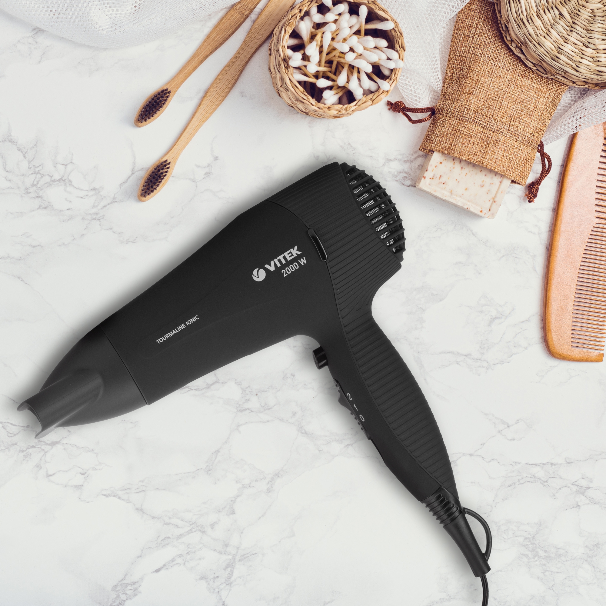 Фен VITEK VT-2534 BK обладает высокой мощностью и имеет несколько режимов температуры и скорости воздушного потока. Противоскользящее покрытие, длинный сетевой шнур — прибор создан для вашего удобства и заботы о ваших волосах.