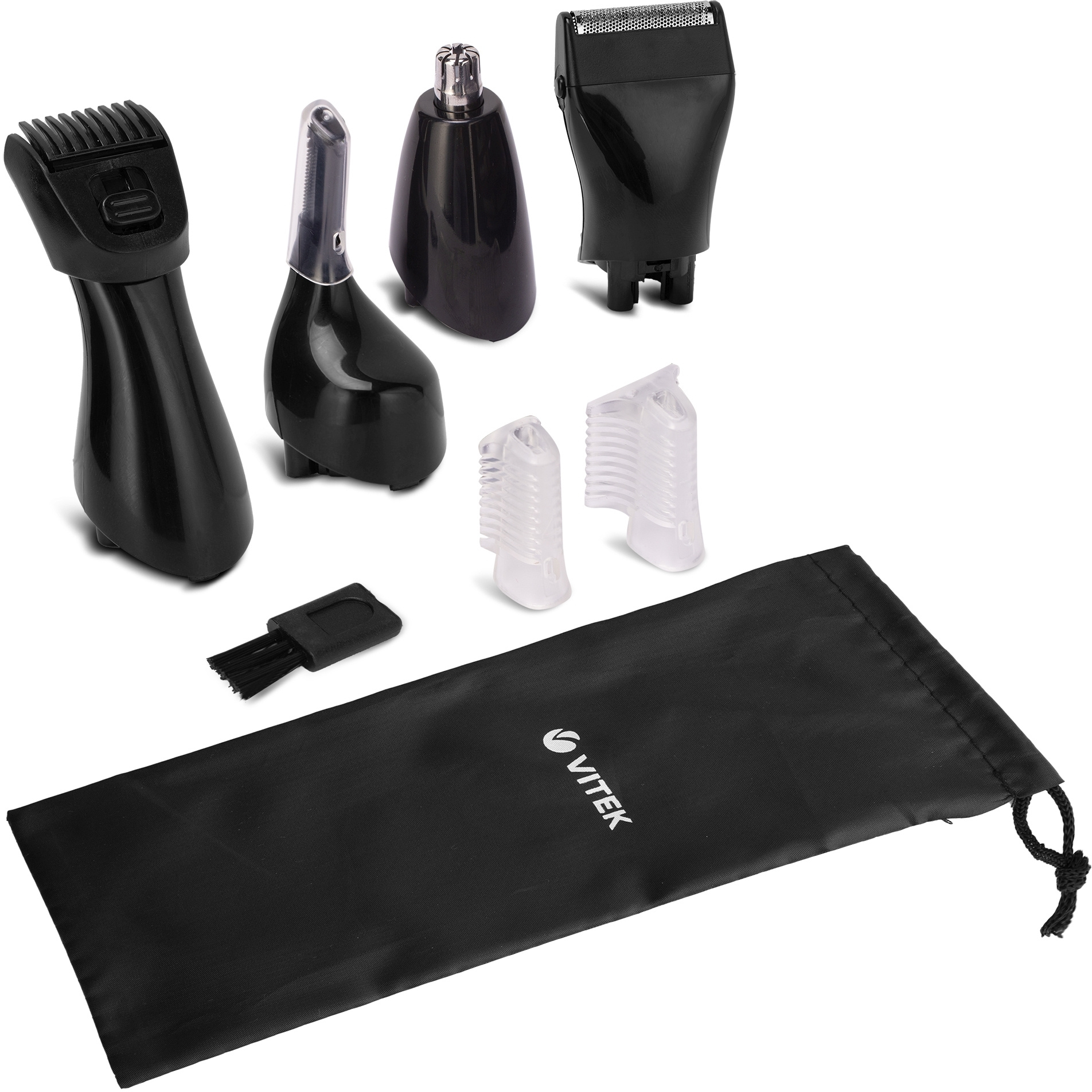 Поддерживать в идеальном состоянии бороду и усы, а также удалять нежелательные волосы на лице поможет триммерный набор 4 в 1 VITEK VT-2545. Его лезвия изготовлены из высококачественной нержавеющей стали, гарантирующей прибору долгий безупречный срок службы. В наборе имеются насадки для бровей (4 мм и 7 мм), для носа и ушей, а также специальная бритвенная. Есть также и детальный триммер (длина стрижки — 2-5 мм), который способен подравнивать усы и бороду, создавая идеально ровные красивые контуры. Все насадки прибора съемные: их легко можно почистить специальной щеточкой или промыть водой. Для удобства хранения в комплект с устройством входит специальная сумочка. Купить триммерный набор VITEK VT-2545 — значит, подарить себе или близкому возможность всегда выглядеть безупречно.
