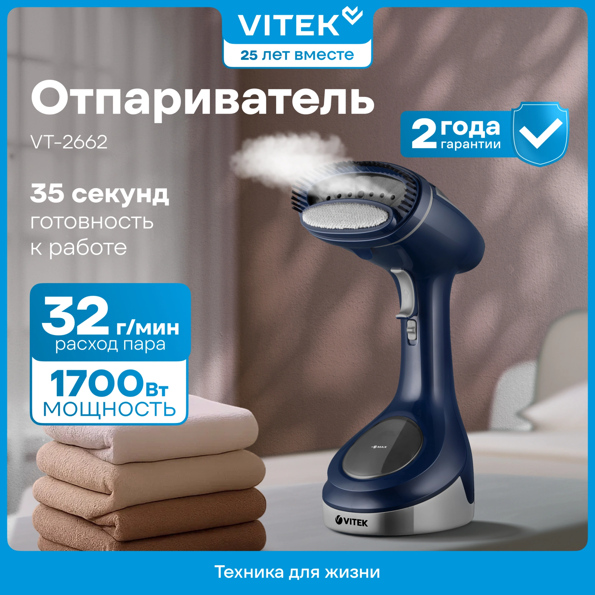 Быстро и без особых усилий привести вашу одежду в порядок поможет ручной отпариватель VITEK VT-2662. Максимальная мощность — 1700 Вт. Благодаря компактному размеру устройство позволяет обрабатывать даже небольшие участки одежды, требующие деликатного воздействия. Прибор включается простым нажатием на кнопку, нагревается всего за 35 секунд и автоматически, с помощью электронасоса, обеспечивает постоянную подачу пара до 30 г/мин. Объем резервуара составляет 280 мл: его хватает для довольно длительной работы устройства. В комплект с устройством входит специальная насадка-щетка, с помощью которой можно легко удалить ворс с ткани. Купите отпариватель VITEK VT-2662: доверьте заботу об одежде современному надежному прибору.