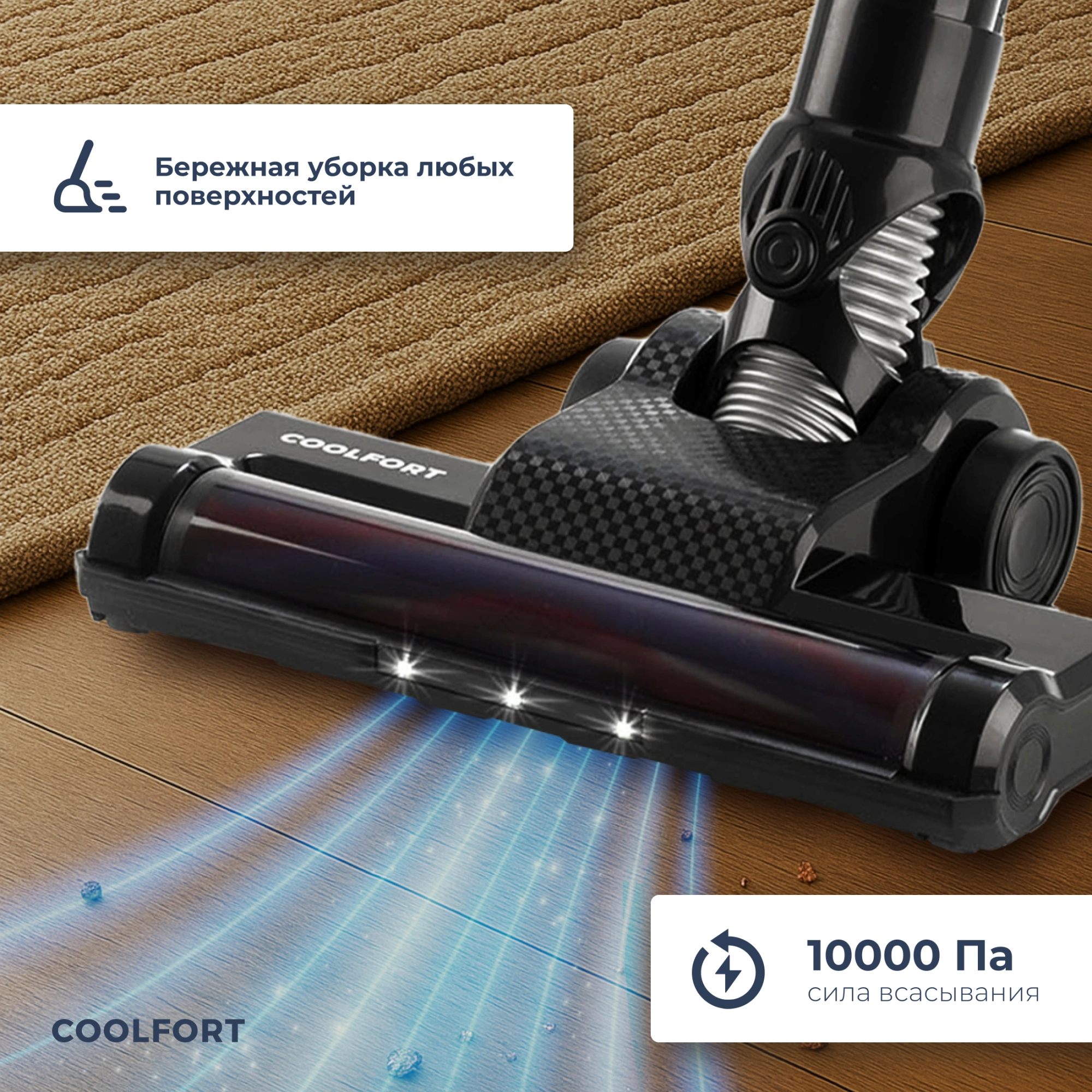 Быстро и качественно убраться в квартире поможет беспроводной пылесос CF-3000 с удобным LED-дисплеем на корпусе. Конструкция прибора - «2 в 1» - позволяет использовать его в обычном, вертикальном формате, а также в компактном, ручном. Благодаря такому решению вы можете очистить от пыли пол или дальние полки шкафов, а также привести в порядок салон автомобиля. Моторизированная щетка с LED-подсветкой делает работу с устройством максимально комфортной.