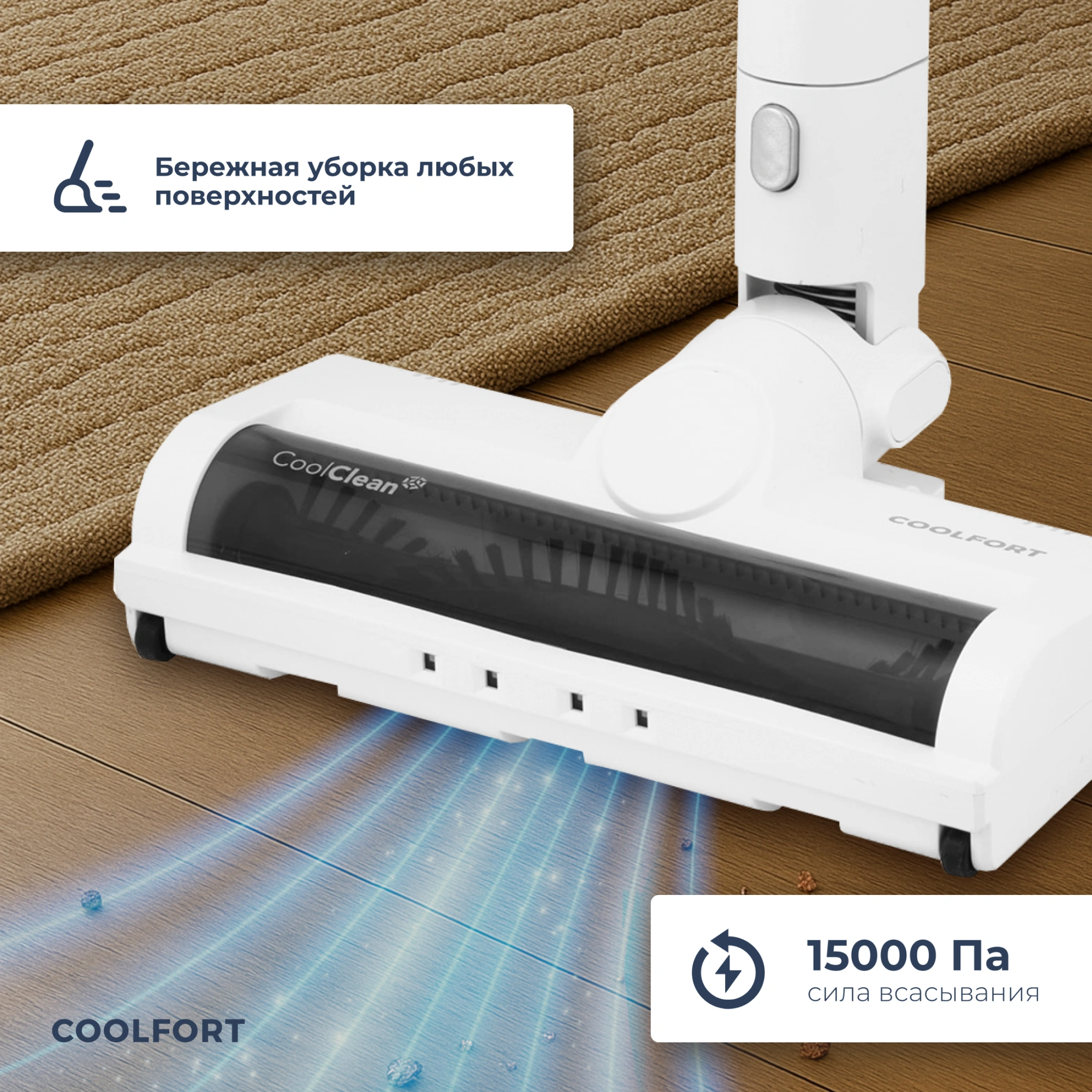 Высокотехнологичный беспроводной пылесос COOLFORT CF-3003 с двумя скоростями работы оснащен BLDC мотором повышенной мощности всасывания (до 15 000 ПА), который гарантирует идеальное очищение всех поверхностей. Конструкция «2 в 1» позволяет использовать его как в вертикальном формате, так и в компактном ручном.