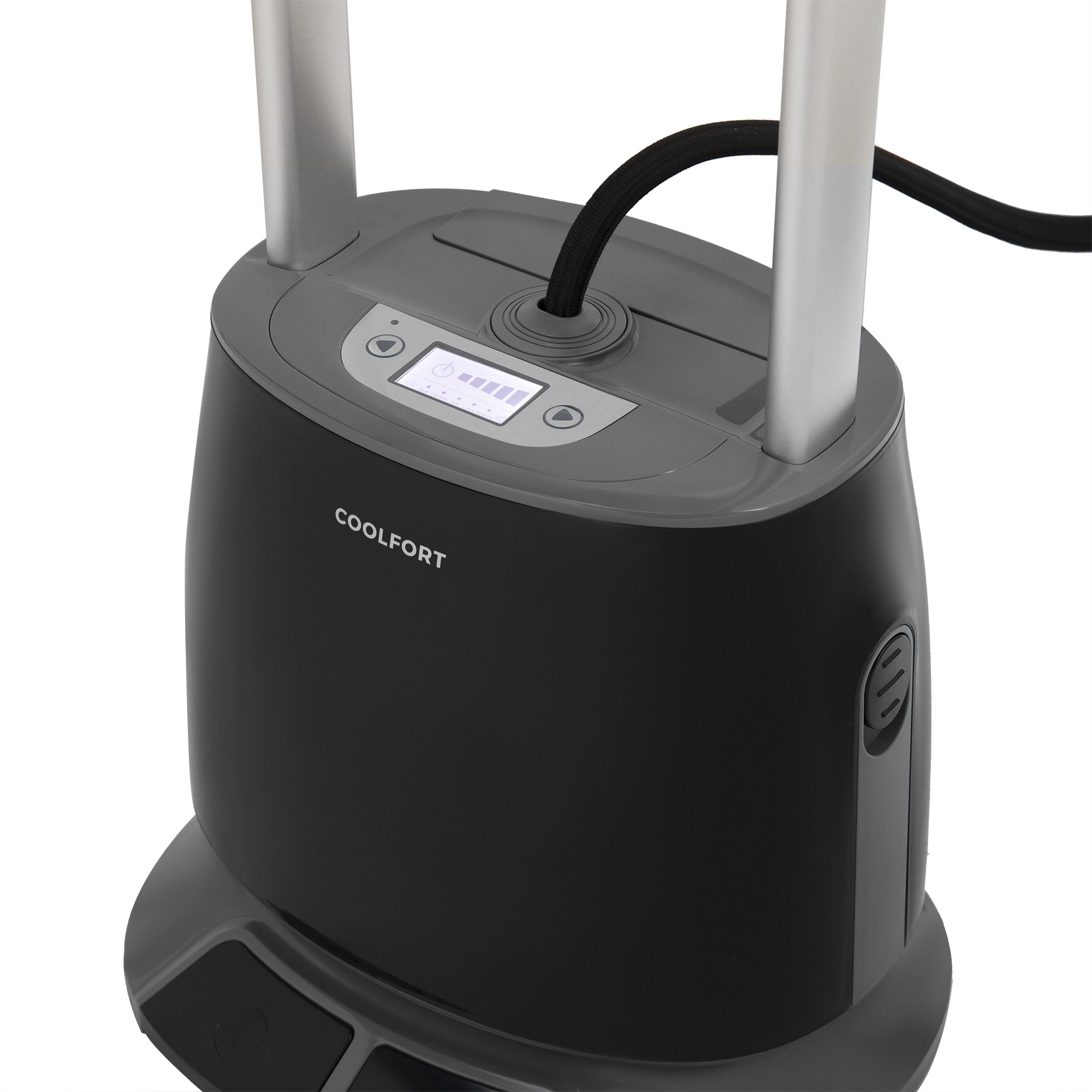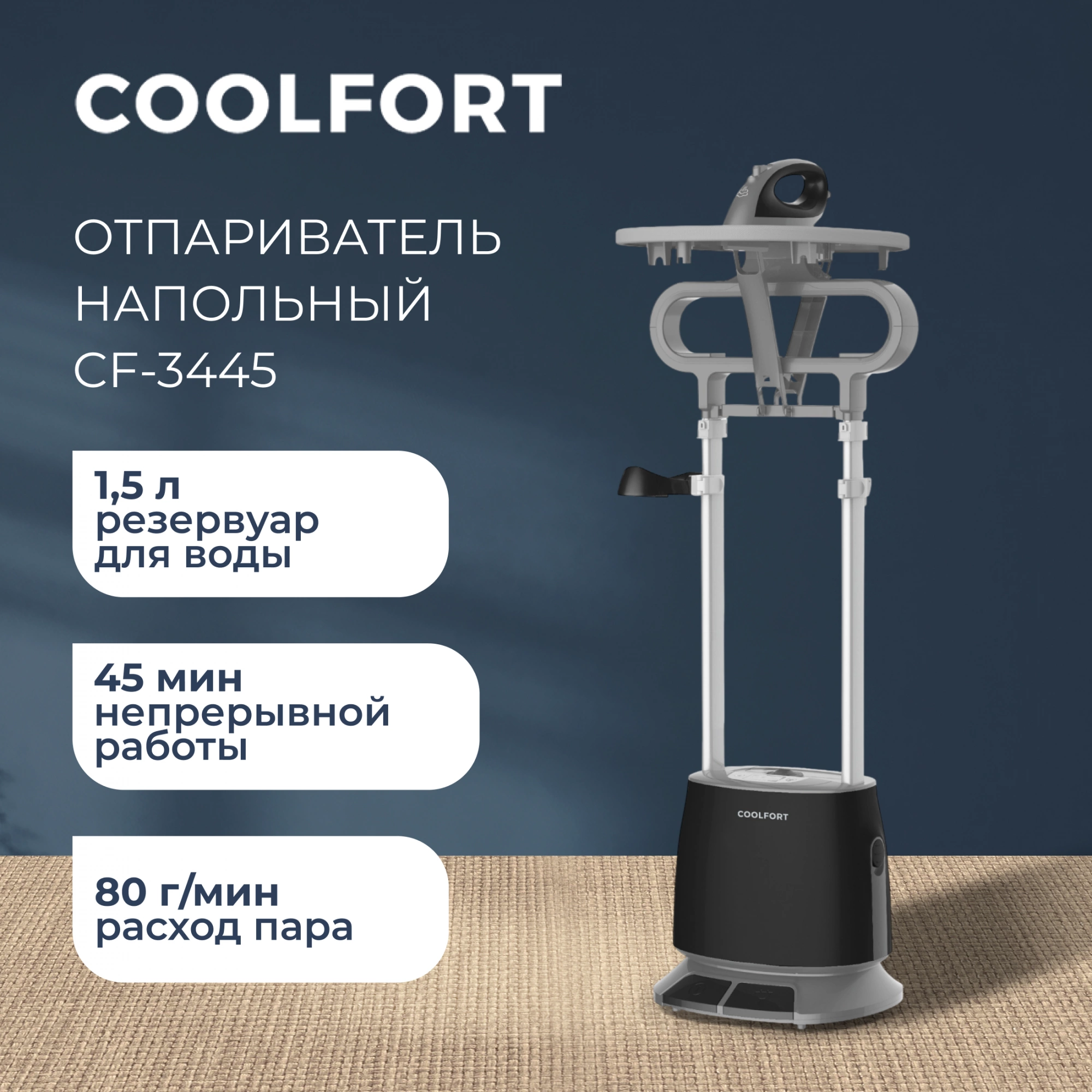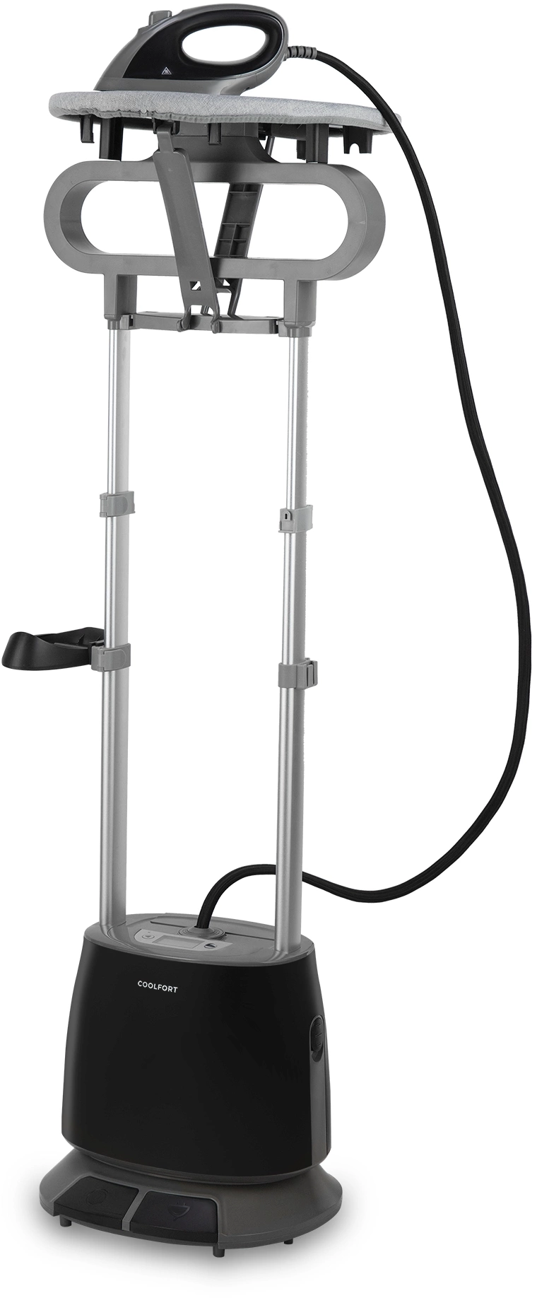 Придать безупречный вид платью, костюму или плащу поможет паровая гладильная система COOLFORT CF-3445 с утюгом, оборудованным керамической подошвой. Максимальная мощность устройства — 2200 Вт. Пользоваться отпаривателем очень удобно, благодаря дисплею и LED-индикации работы. Всего через 45 секунд после включения прибор нагреется и сможет приступить к выполнению ваших «заданий».