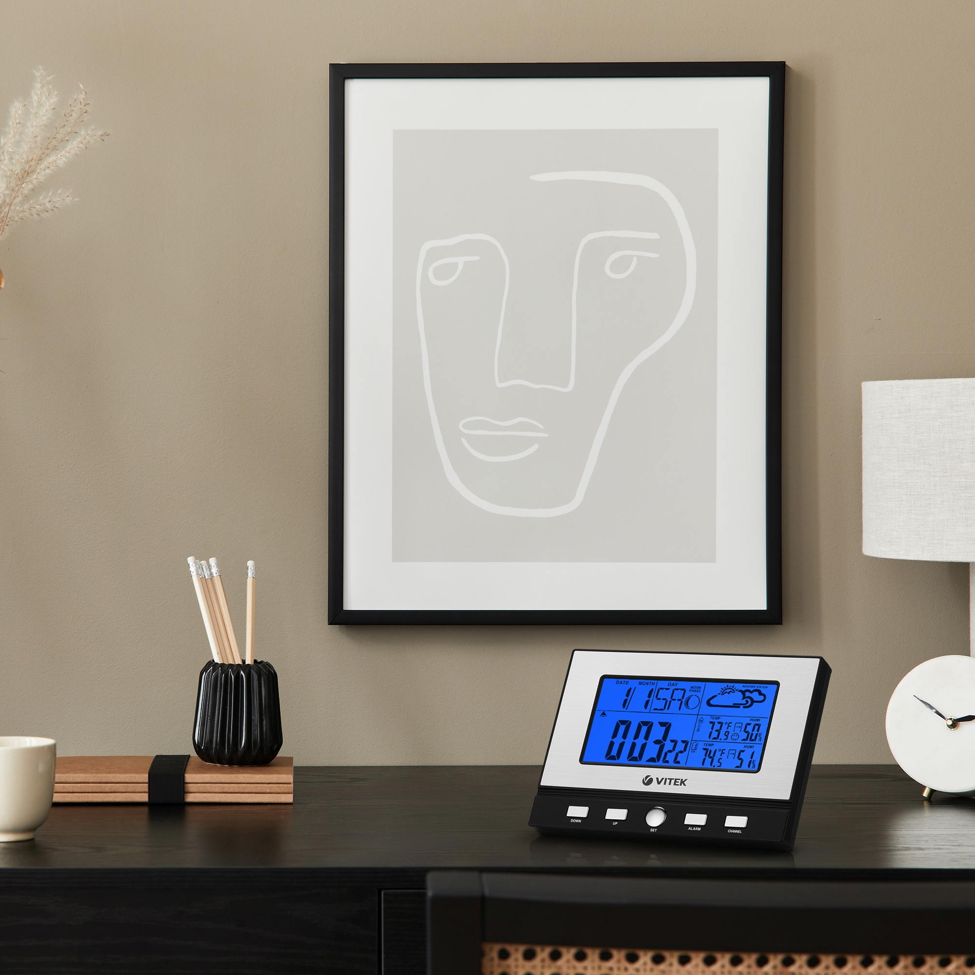 Функциональное устройство для точных показаний! Прибор покажет анимированный прогноз погоды, определит фазу луны и индекс комфортности. А также метеостанция определит температуру и уровень влажности, время, дату и день недели.
