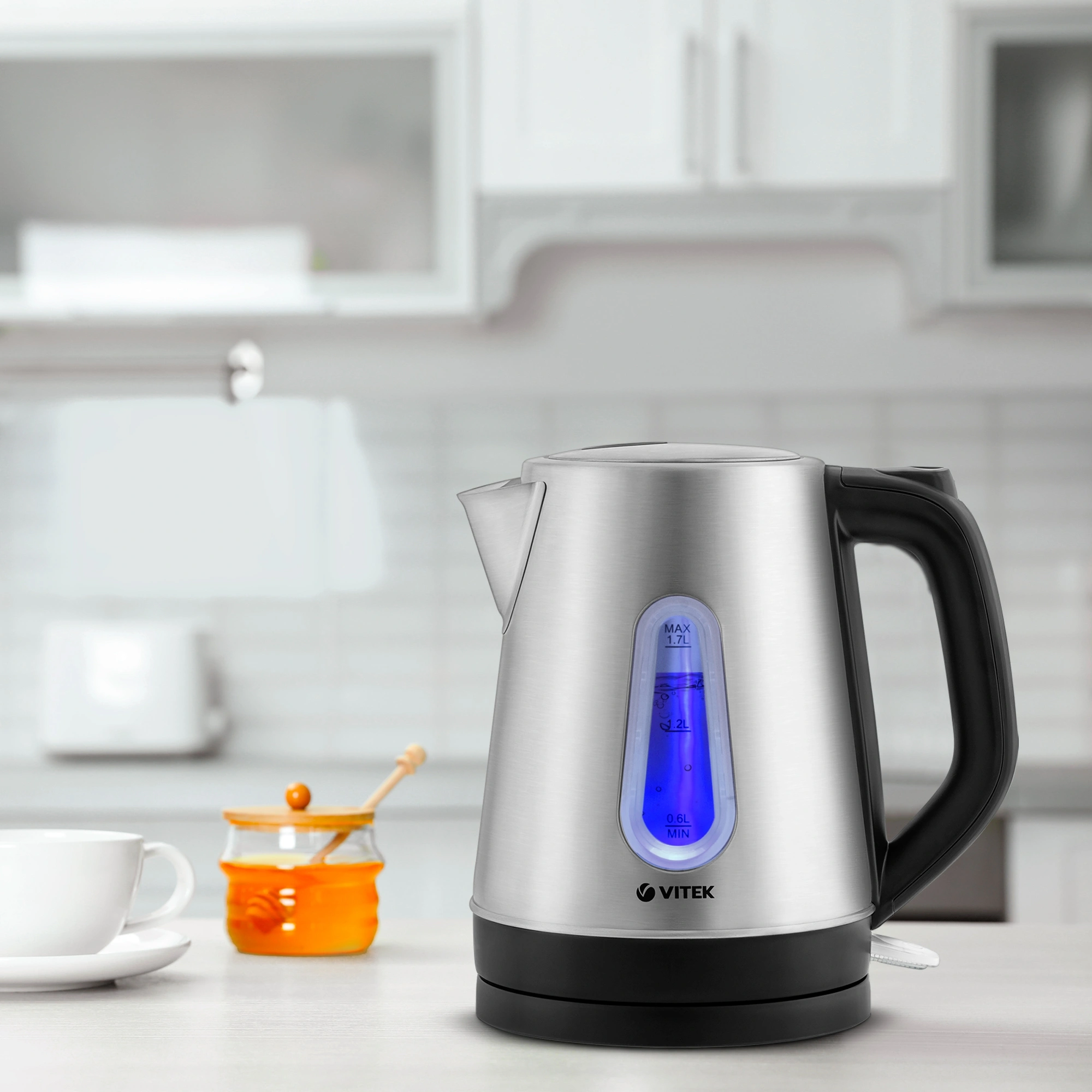 Чайник VITEK VT-7038 – хороший повод, чтобы собраться с семьей или друзьями за чашкой вкусного чая. Благодаря технологии внутренней подсветки Colour VITEK VT-7038 станет самым заметным электроприбором на вашей кухне. Корпус из высококачественной нержавеющей стали сохраняет все вкусовые и полезные свойства воды, а скрытый нагревательный элемент облегчает очистку от накипи. Объем в 1,7 л удобен для большой семьи. Корпус чайника оснащён индикатором уровня жидкости. Удобная шкала с нанесенной разметкой поможет вам вскипятить столько воды, сколько вам нужно в данный момент. При этом, если вы случайно включите пустой чайник или уровень воды в нем будет ниже минимальный отметки, защитный контроллер тут же его отключит.
