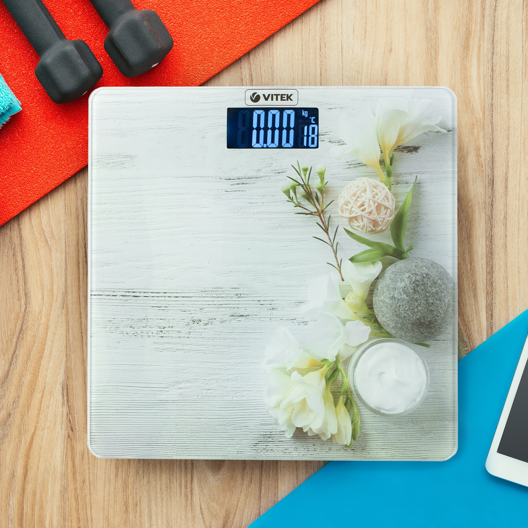 Контролировать свой вес и таким образом следить за фигурой позволят электронные напольные весы VITEK VT-8077. Их платформа выполнена из закаленного стекла толщиной 6 мм и способна выдерживать до 180 кг. Весы имеют функции автоматического включения, выключения, а также обнуления результатов. Дисплей 75х35 мм с белой подсветкой показывает не только вес, но и температуру помещения, где находится прибор.
