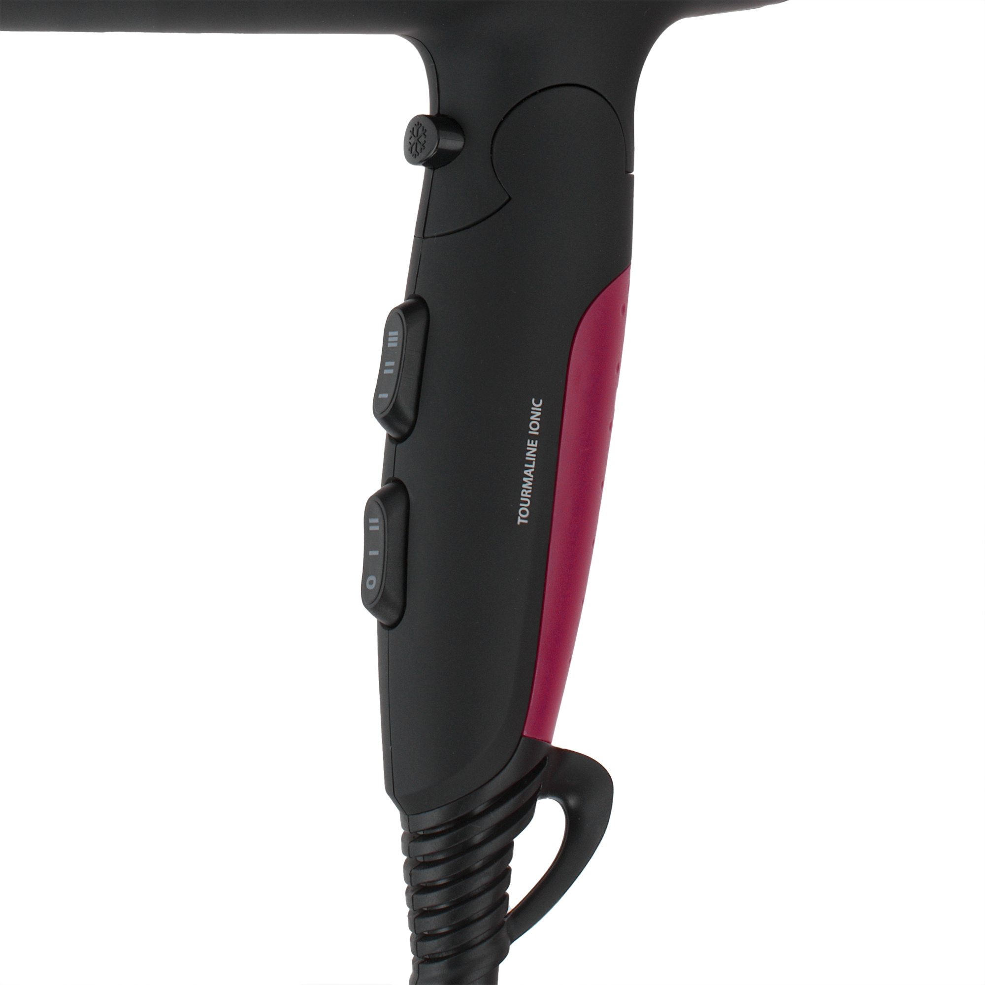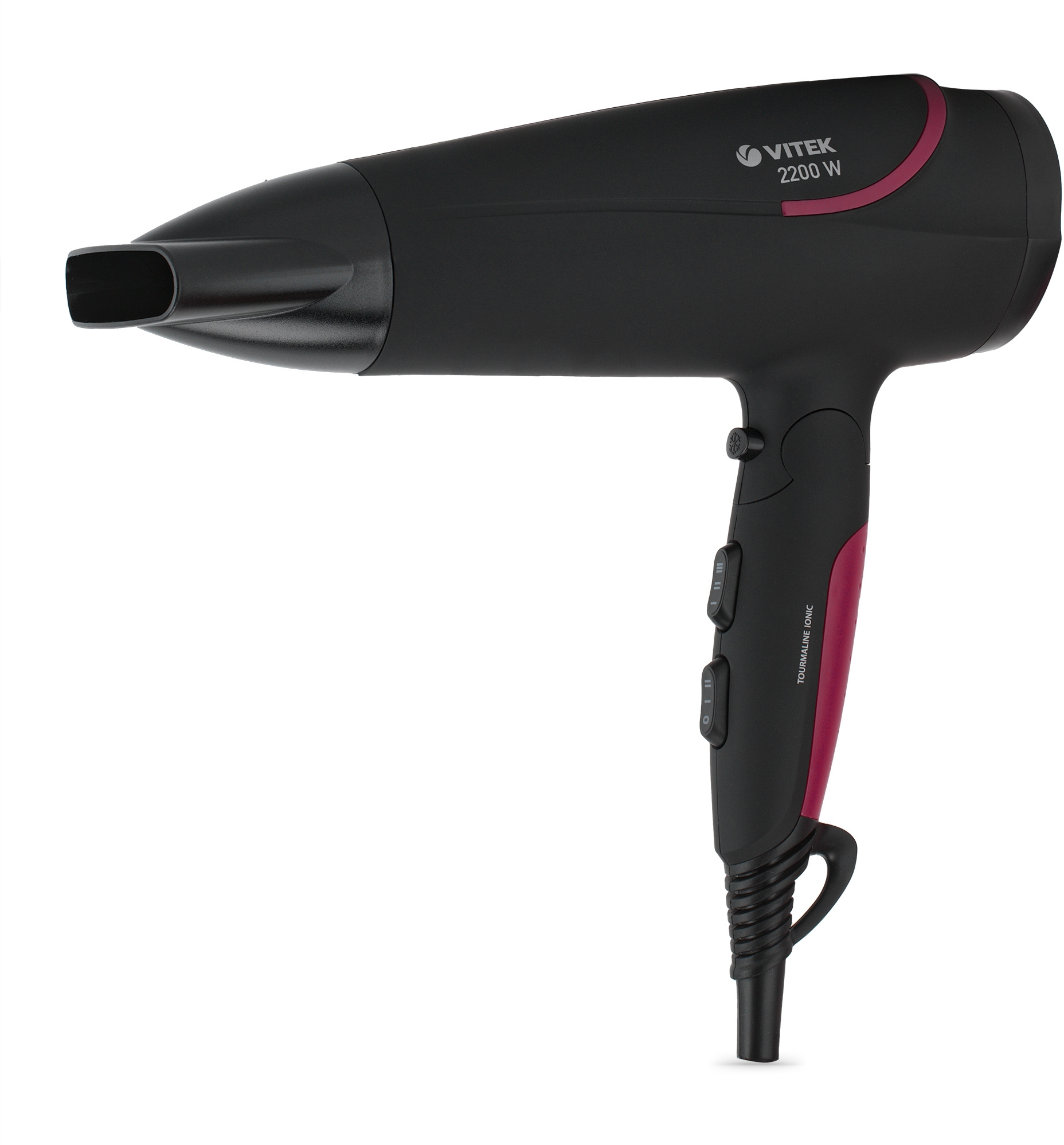 VITEK VT-8226 в стильном черном корпусе – это серьезный помощник в деле ухода за волосами. При этом он довольно компактен благодаря складной ручке, которая делает его удобным для хранения. Фен имеет мощность 2200 Вт, а также оснащен шестью режимами температуры и скорости воздушного потока. Инновационная технология Tourmaline Ionic обеспечивает волосам гладкость за счет создаваемого горячим воздухом потока отрицательных ионов, снимающих статическое электричество и запечатывающих волосяные чешуйки.