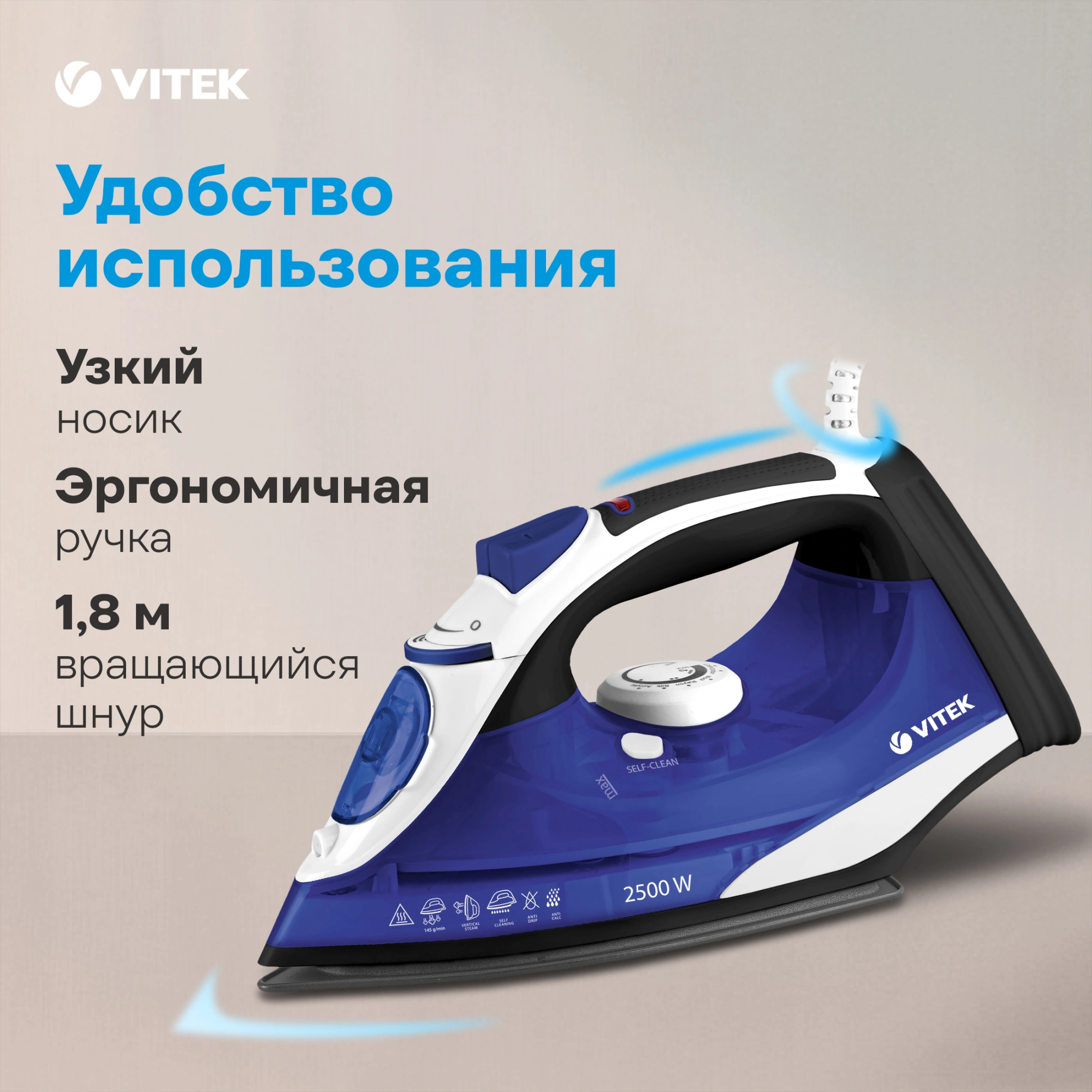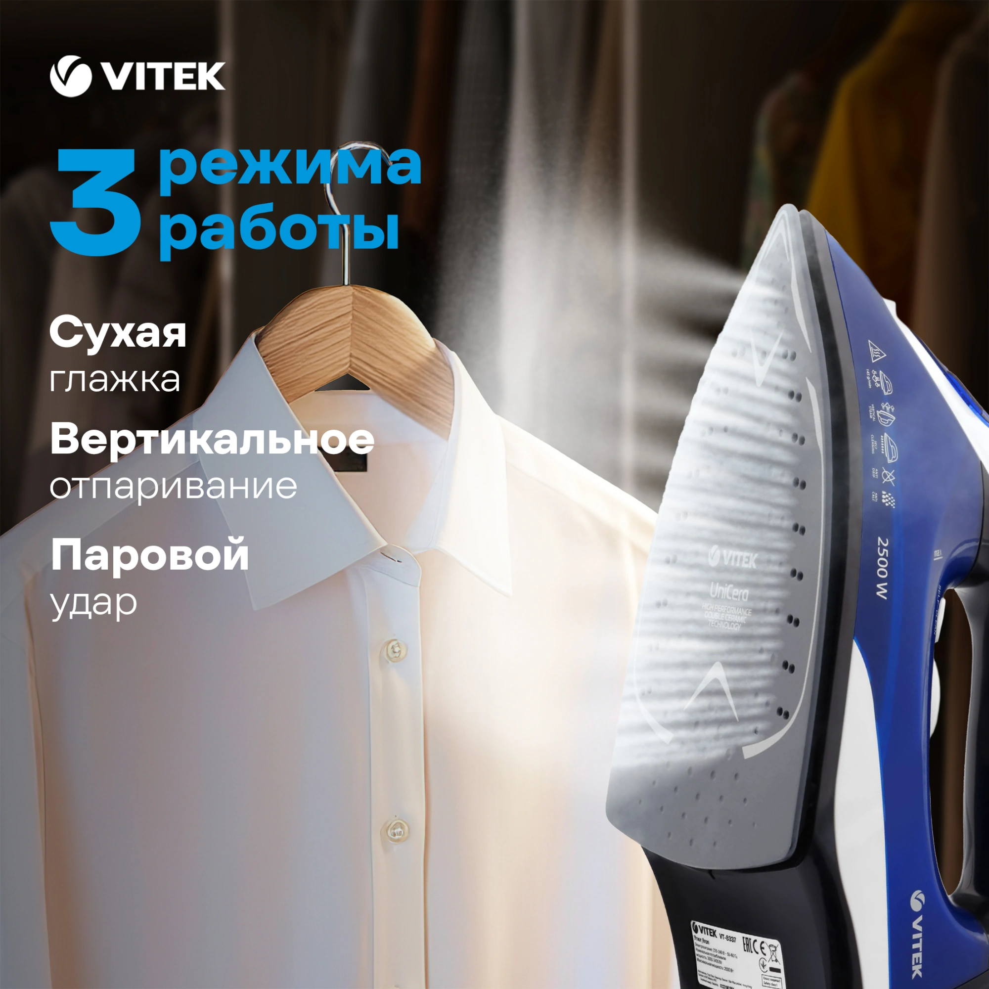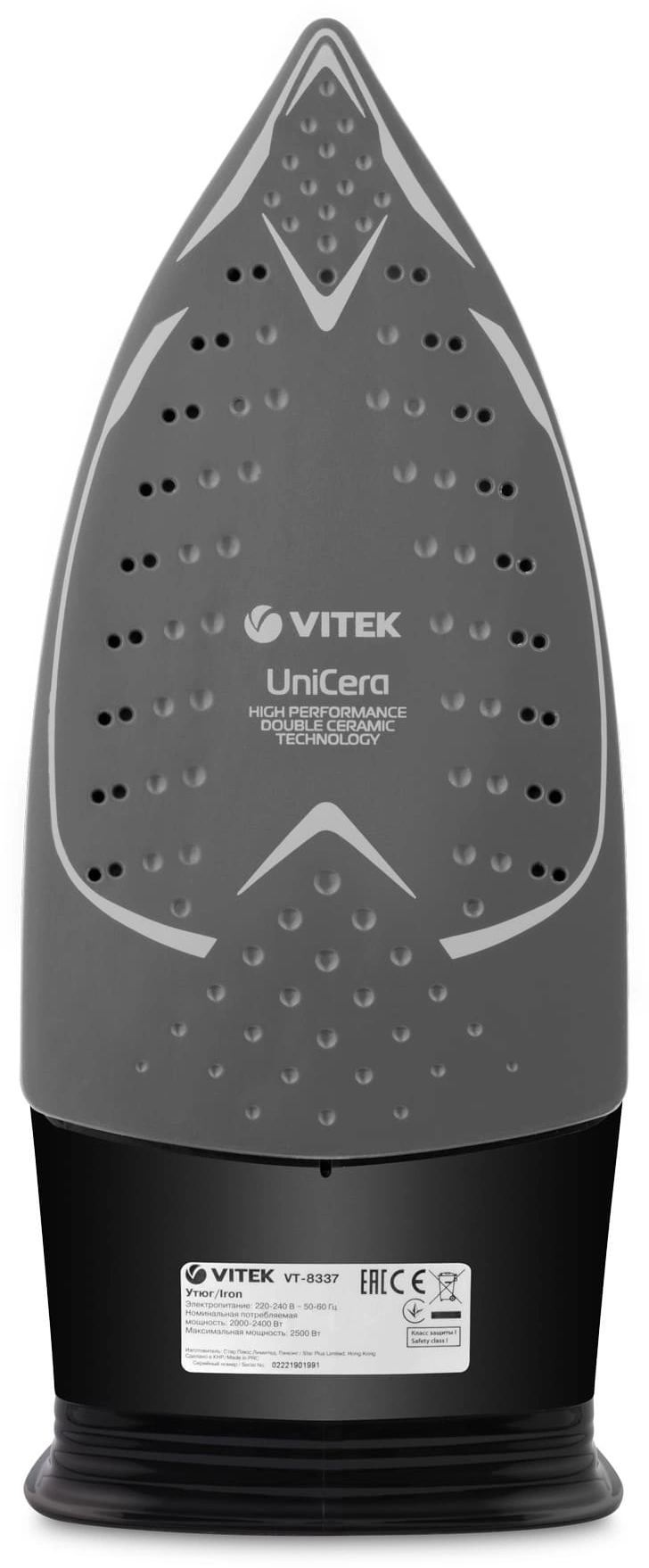 Быстро привести в порядок вашу одежду поможет утюг VITEK VT-8337 с максимальной мощностью 2500 Вт. Подошва прибора имеет уникальное двойное керамическое покрытие UniCera, обеспечивающее сверхлегкое скольжение даже по самой сложной ткани. Помимо сухого глажения с режимом разбрызгивания, в утюге имеется функция вертикального отпаривания (максимальный паровой удар — 145 г/мин). Регулируйте подачу пару по своему желанию! Объем резервуара для воды составляет 340 мл: отмерить ее поможет специальный стакан. Благодаря противокапельной системе и функции самоочистки со встроенной защитой от накипи пользоваться прибором невероятно комфортно. Особому удобству в работе способствует и шаровое крепление сетевого шнура длиной 1,8 м. Купите утюг VITEK VT-8337, чтобы не только отглаживать одежду, но и бережно ухаживать за ней.
