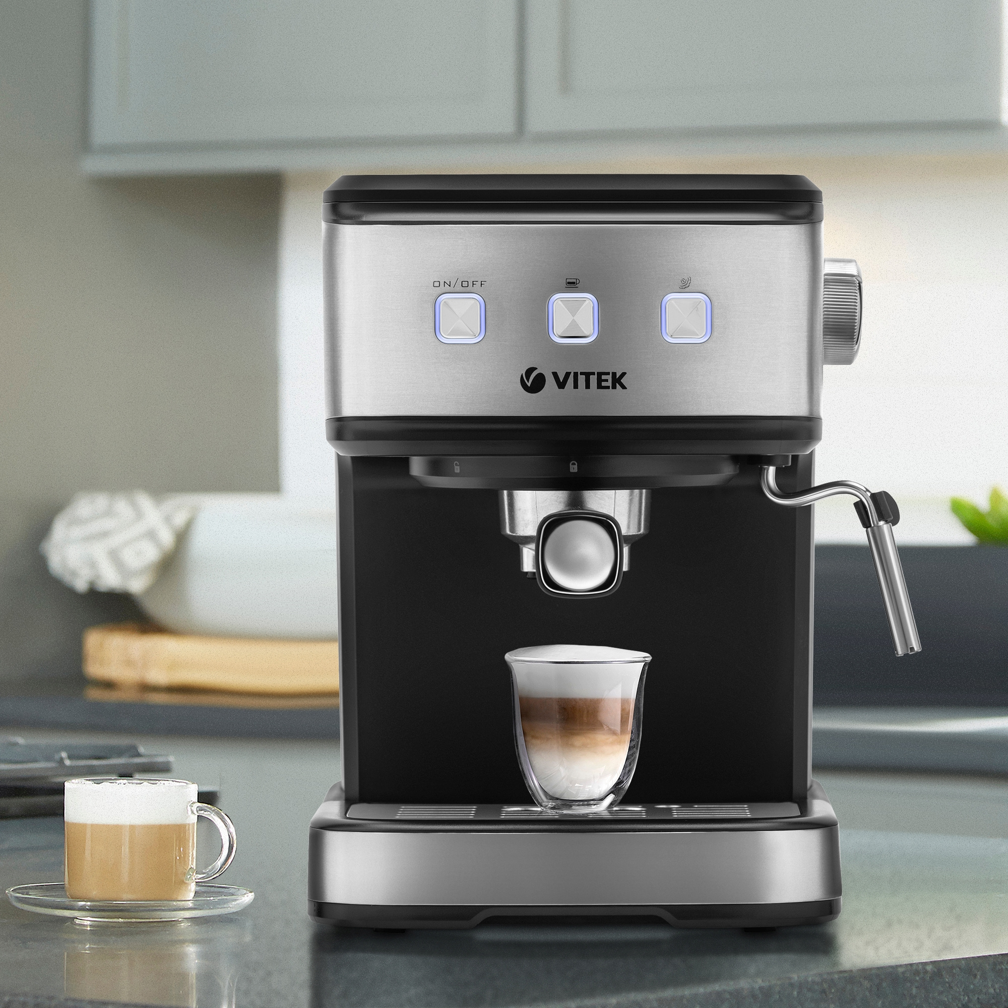 Удовлетворить вкусы самых взыскательных гурманов способна кофеварка VITEK VT-8470 с итальянской помпой фирмы ULKA, обеспечивающей давление в 15 бар. Устройство оснащено уникальным фильтром, который позволяет готовить идеальный эспрессо с густой ароматной пенкой, а также капучинатором, взбивающим молоко для капучино, латте или горячего шоколада. Номинальная потребляемая мощность прибора — 850 Вт. Для особого комфорта в использовании кофеварка оборудована съемным резервуаром для воды емкостью 1,5 л и съемным поддоном для капель. О включении устройства вас оповестит специальный индикатор. При желании, перед приготовлением напитка чашку можно подогреть на специальной платформе. В комплект с кофеваркой также входит удобная мерная ложечка. Купите кофеварку VITEK VT-8470 — готовьте любимые напитки профессионально!