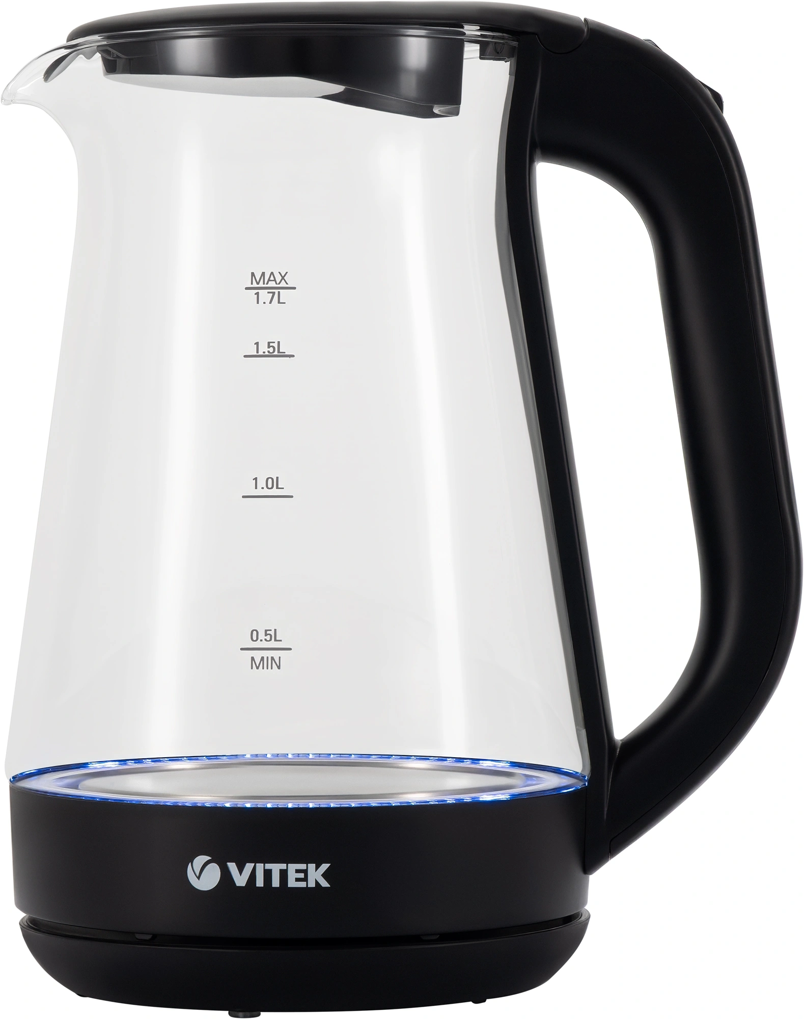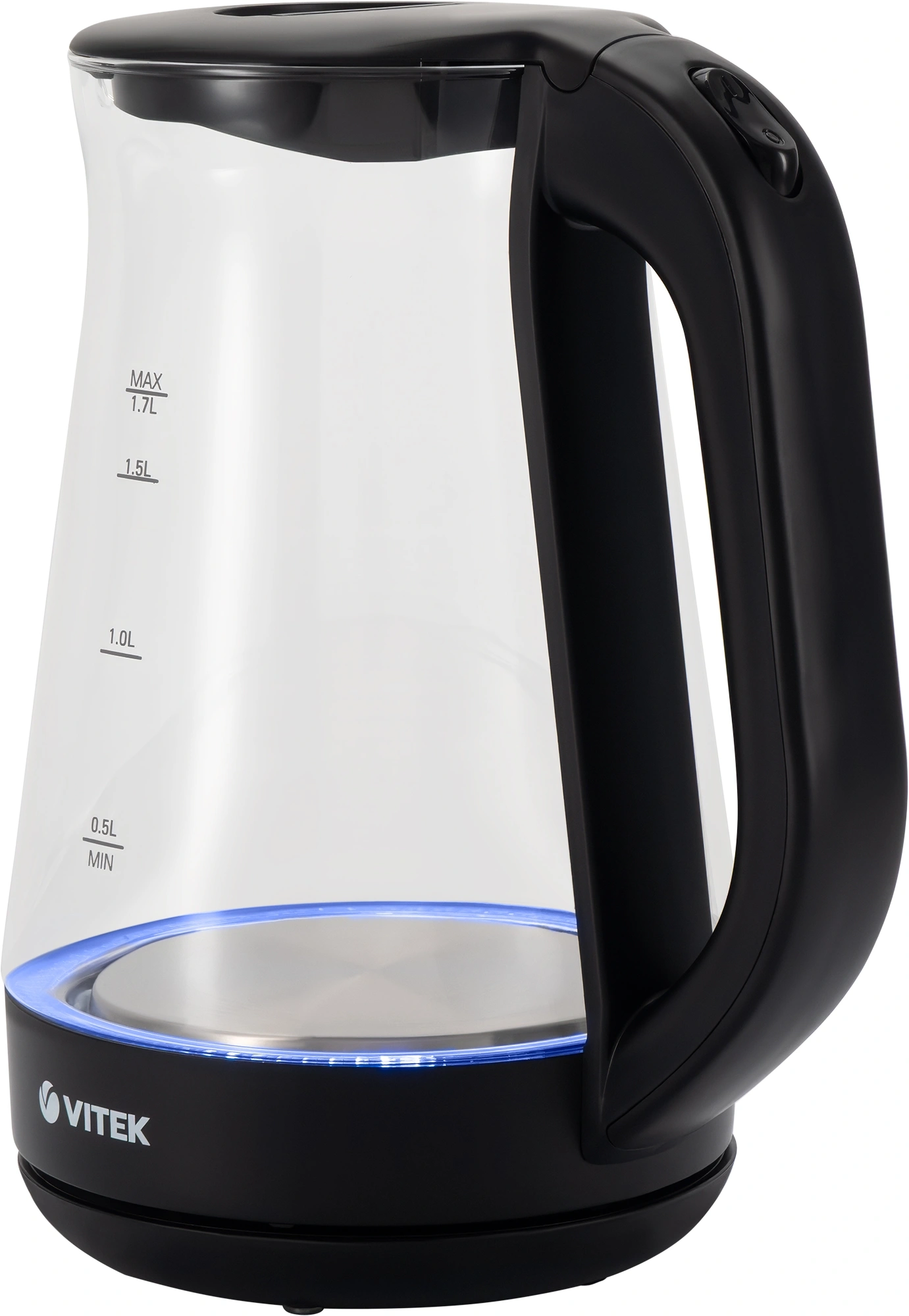 Стильный чайник VT-8803 объёмом 1,7 литра изготовленный из термостойкого стекла порадует всех ценителей надежной техники для кухни. Красивая внутренняя подсветка корпуса позволит вам с удовольствием наблюдать за процессом кипячения воды. Нагрев воды осуществляется с помощью скрытого нагревательного элемента расположенного в дне чайника. Крышка прибора открывается механически. Максимальная мощность чайника 2200 Вт. Прибор имеет защиту от перегрева и автоматически отключается при закипании или отсутствии воды. Пользоваться чайником очень удобно: он способен поворачиваться на 360°. Купить чайник VITEK VT-8803 — значит, подарить себе и близким ощущение особого домашнего уюта.