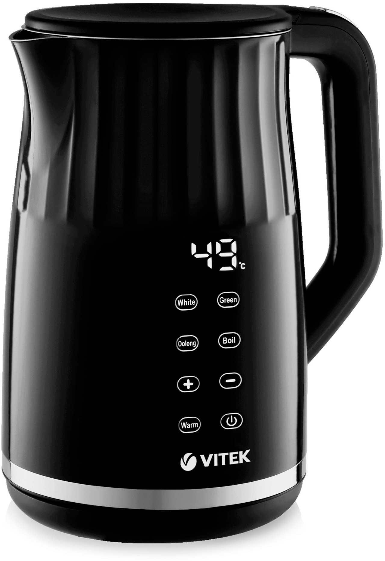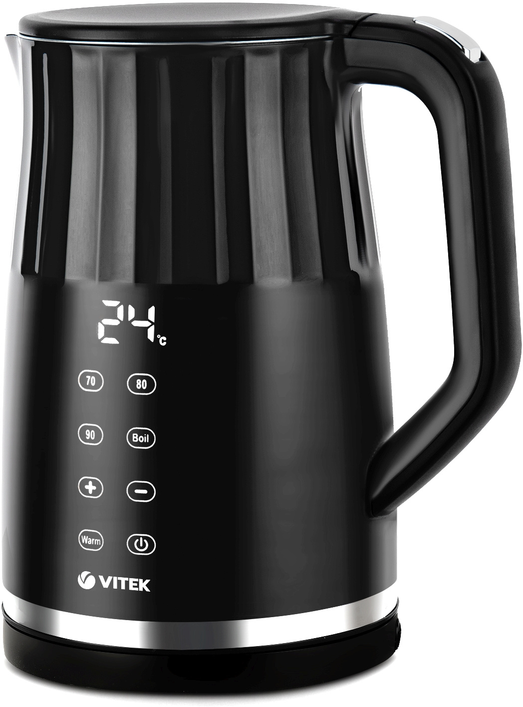 Лаконичные формы и элегантный дизайн чайника VITEK VT-8826 превратят его в один из самых желанных аксессуаров на Вашей кухне! Корпус чайника выполнен из высококачественного пластика в комбинации с нержавеющей сталью в форме элегантного кувшина. Благодаря технологии Cool touch он абсолютно безопасен в работе: поверхность не нагревается в процессе кипячения воды! В чайнике предусмотрено 4 автоматических режимов подогрева воды — 70°С /80°С/ 90°С/100°С и 13 режимов регулировки температуры нагрева воды: от 40 до 100 °С, а также функция поддержания температуры (до 2 часов). Нельзя не отметить инновационную индикацию температуры воды, расположенную на фронтальной части корпуса. Смотрится очень стильно и современно! Нагревательный элемент чайника VT-8826 встроен в плоское дно и надежно защищен стальной пластиной, это позволяет не только сделать чайник привлекательным даже изнутри, но и делает его чистку максимально удобной. Среди характеристик безопасности использования чайника стоит отметить отключение при отсутствии воды и автоотключение при закипании воды. Для удобства чайник обеспечен местом для хранения шнура. Максимальная мощность чайника - 2200 Вт, максимальный объем - 1,7л.