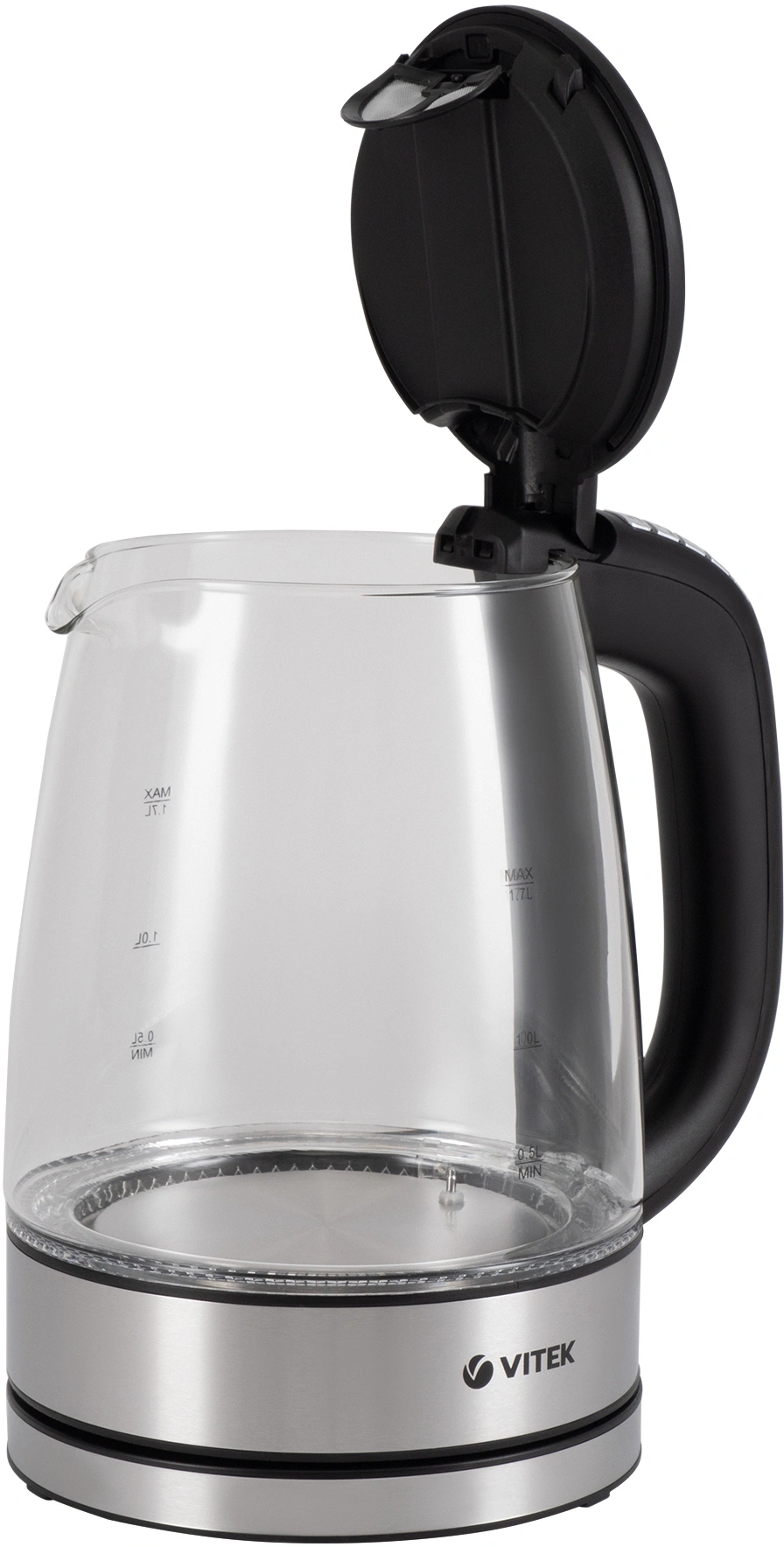 Пользоваться чайником невероятно удобно: он способен поворачиваться на 360°, а его крышка открывается механически. Ваши напитки будут надежно защищены от накипи, благодаря специальному съемному фильтру на носике устройства. Нагревательный элемент прибора встроен в плоское дно и защищен стальной пластиной, поэтому ухаживать за устройством очень легко. Устройство оснащено защитой от перегрева и автоматически отключается при закипании или отсутствии воды (следите за ее уровнем по шкале). Купите чайник VITEK VT-8828 и готовьте любимые напитки по всем правилам!