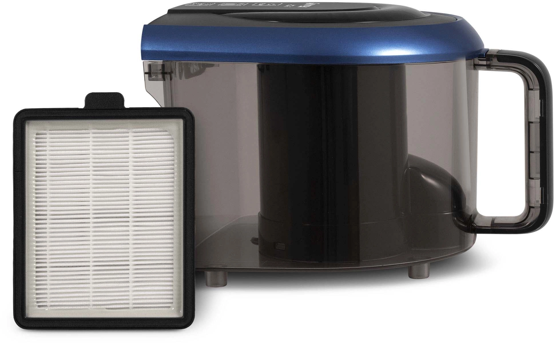 Благодаря циклонной системе, воздух и пыль разделяются внутри контейнера, снижая нагрузку на фильтры и сохраняя стабильную мощность всасывания. Устройство оснащено многоступенчатой фильтрацией, включая HEPA-фильтр, что делает модель отличным выбором среди пылесосов для аллергиков. Он надежно удерживает микрочастицы пыли и пыльцу, обеспечивая более чистый и безопасный воздух в помещении.