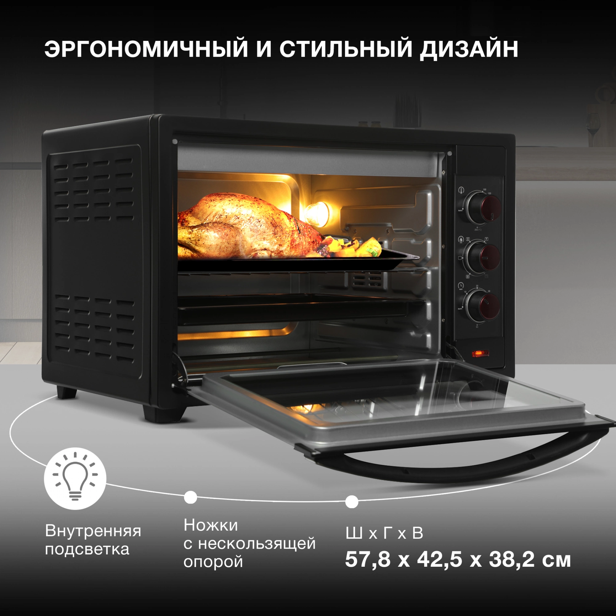 двойное жаропрочное стекло, таймер на 60 мин, ручка из нержавеющей стали