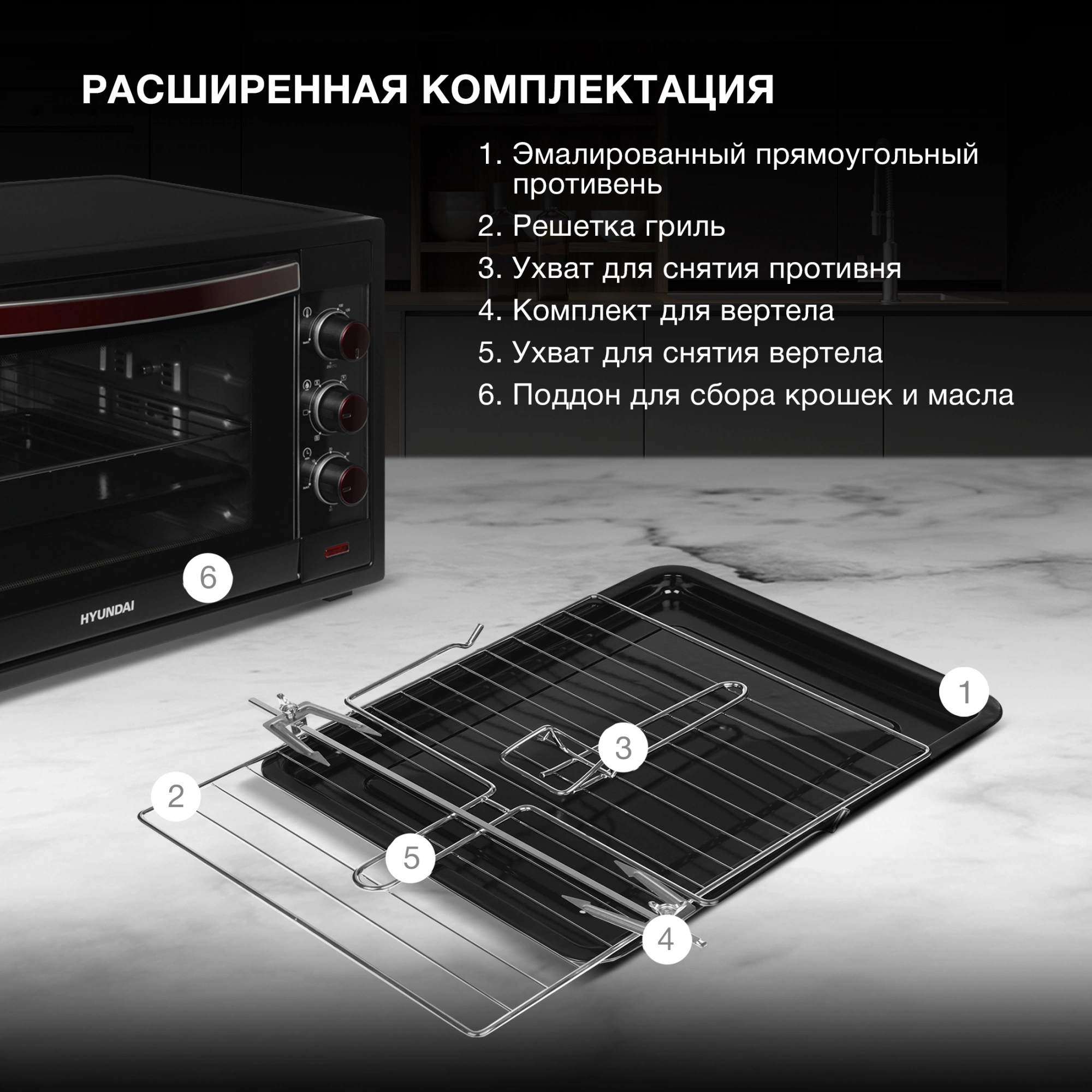 поддон для сбора крошек и масла, вертел, ручка для снятия вертела, противень, хромированная решетка гриль