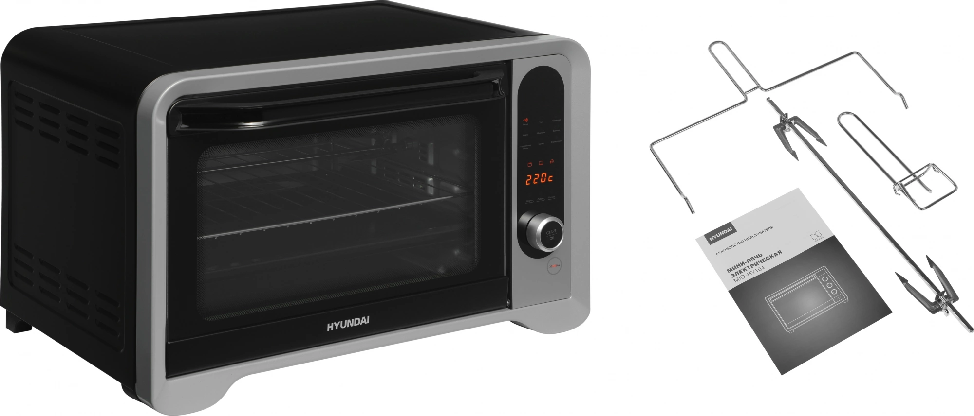 поддон для сбора крошек и масла, вертел, ручка для снятия вертела, противень, ухват для снятия противня, хромированная решетка гриль