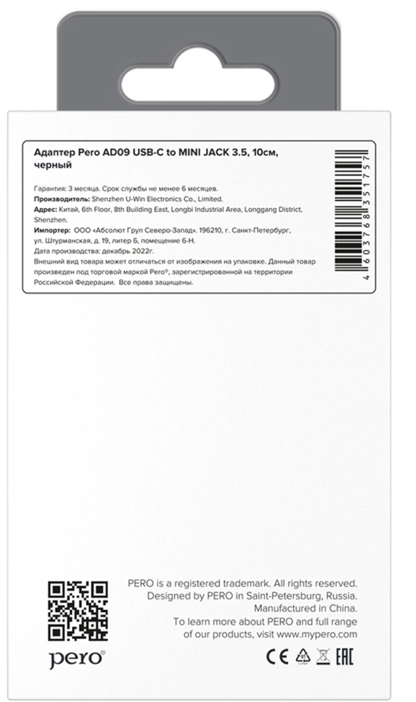 Адаптер PERO AD09 служит для подключения различных устройств с разъёмом mini jack 3.5 mm к устройствам с портом USB-Type C. Предназначен для использования только с устройствами, у которых отсутствует аудио разъем mini jack 3.5 mm.