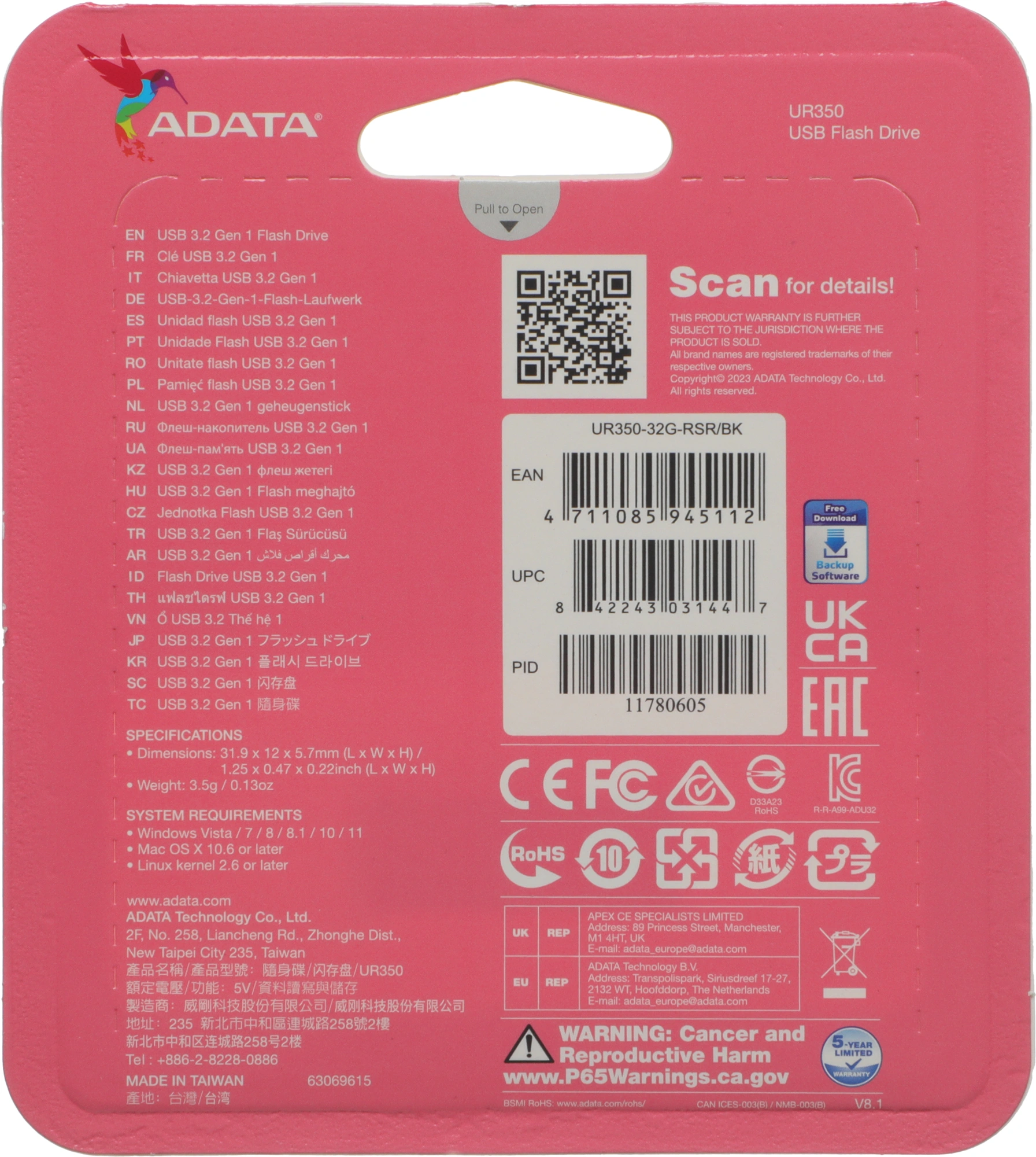 UR350-32G-RSR/BK USB3.2 серебристый/черный