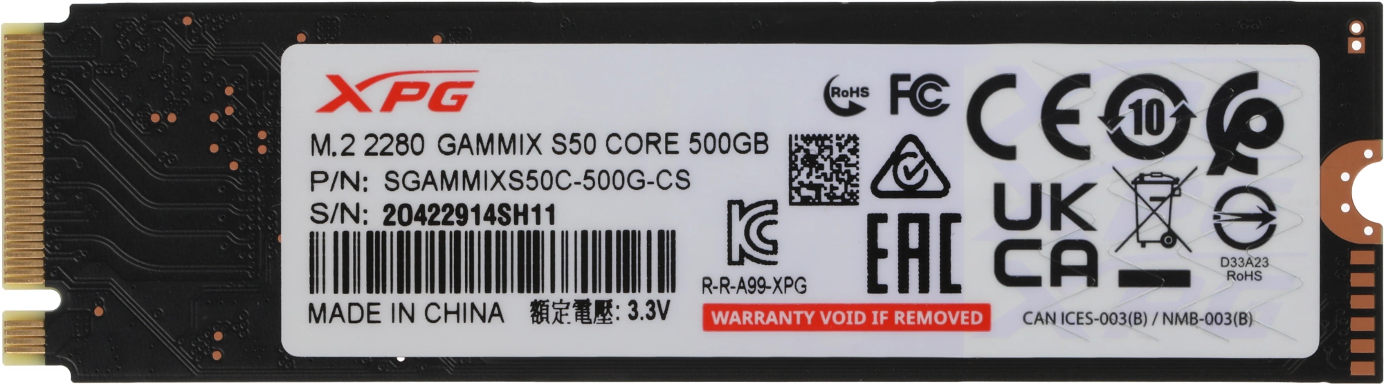 Накопитель SSD A-Data PCIe 4.0 x4 500GB SGAMMIXS50C-500G-CS Gammix S50 Core