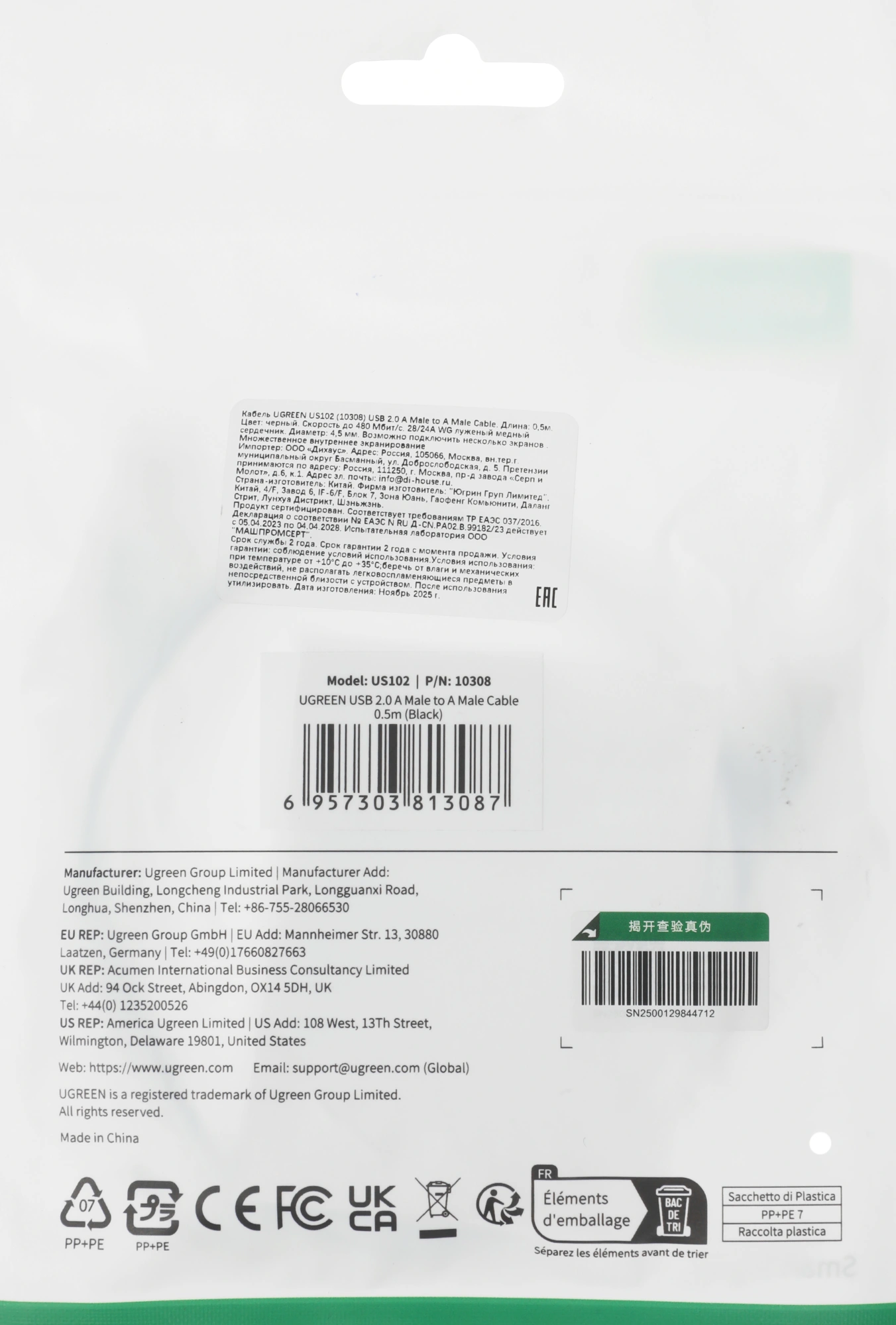 USB 2.0 A(f) USB 2.0 A (f) 0.5м (10308) феррит.кол...