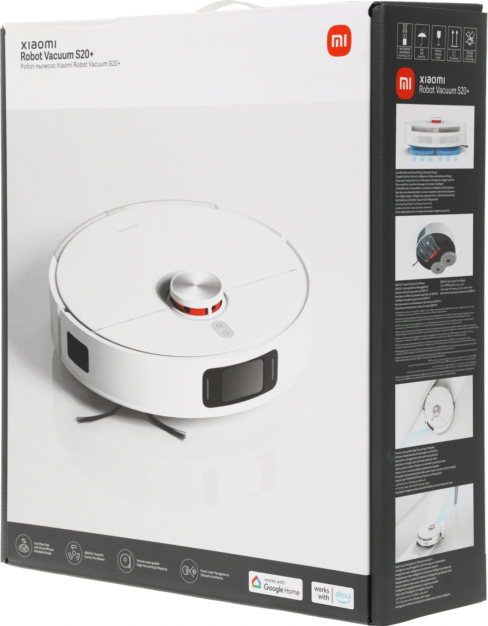автоматическая работа, автоматический поиск зарядного устройства, выбор зоны, построение карты помещения, распознавание ковров, уборка по расписанию, управление со смартфона