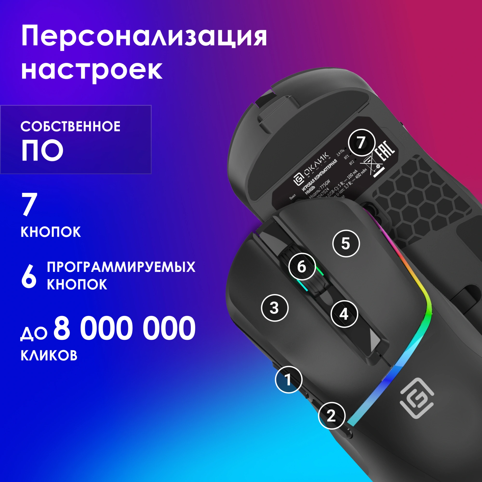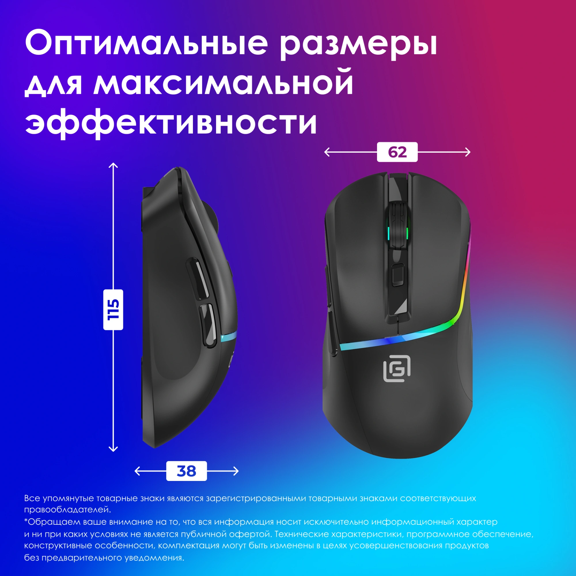 Беспроводная игровая мышь, с возможностью подключения по Bluetooth, радиоканалу (USB-донгл) и кабелем. Отключаемая RGB-подсветка и тефлоновые накладки
