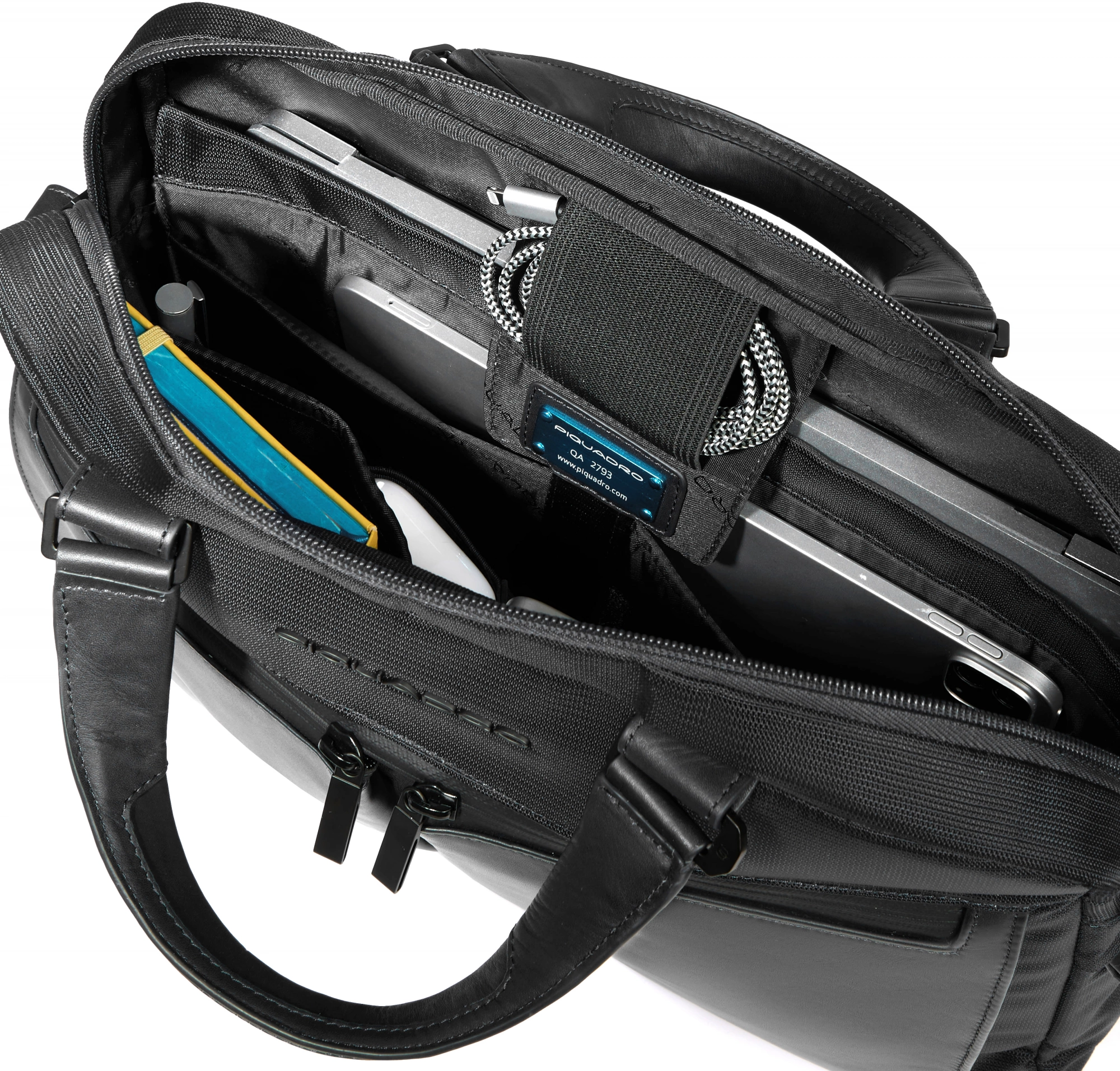 Деловая сумка Piquadro Orion CA6623S136/N с отделением для ноутбука 14" черная ткань/натур.кожа