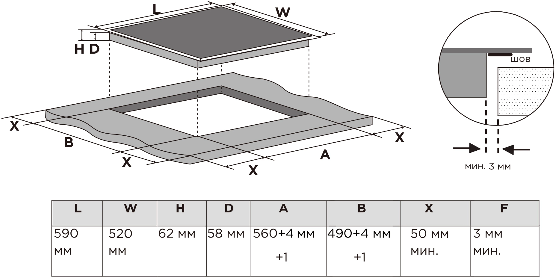 блокировка управления (защита от детей), защитное отключение, отключение при проливе жидкости, распознавание наличия посуды, самодиагностика