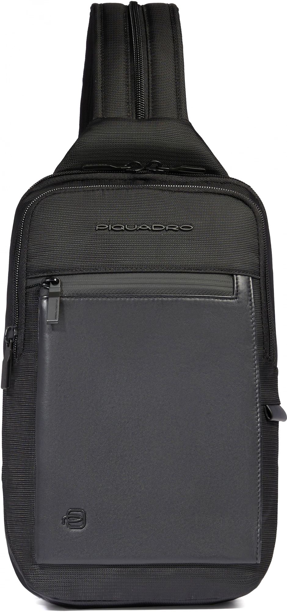 Рюкзак слинг мужской Piquadro Orion CA6625S136/N черный ткань/натур.кожа