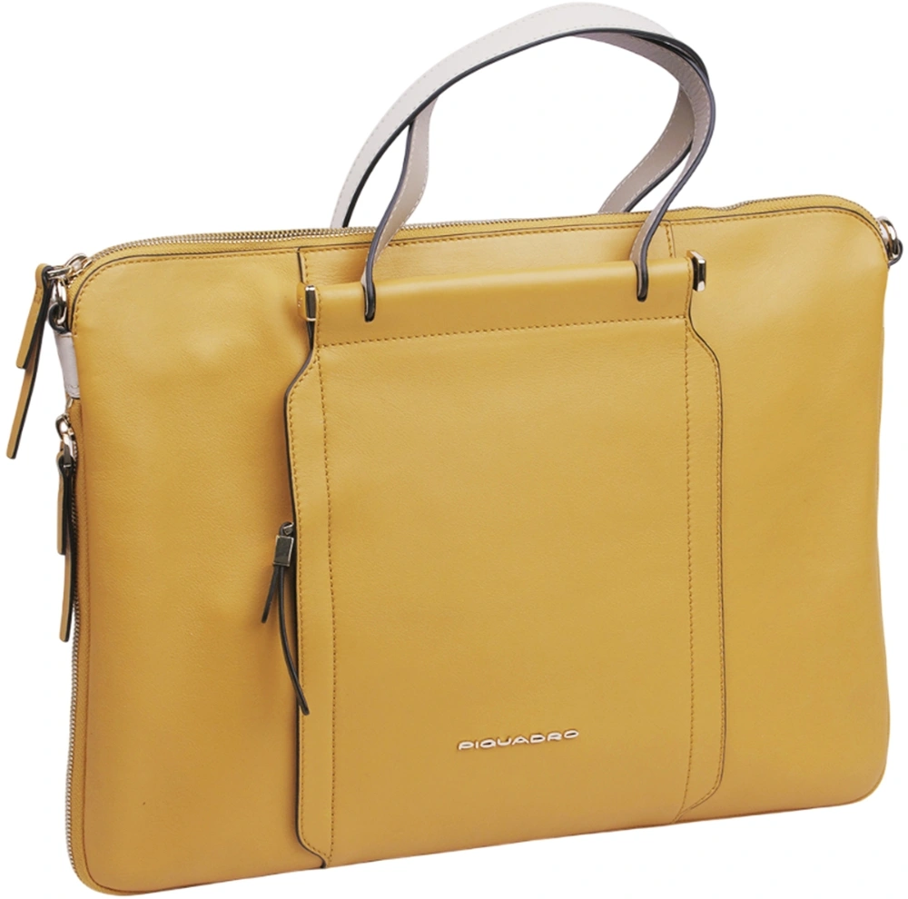 Деловая сумка женская Piquadro Circle CA4021W92/GBE с отделением для ноутбука 15.6" шафрановая/бежевая натур.кожа