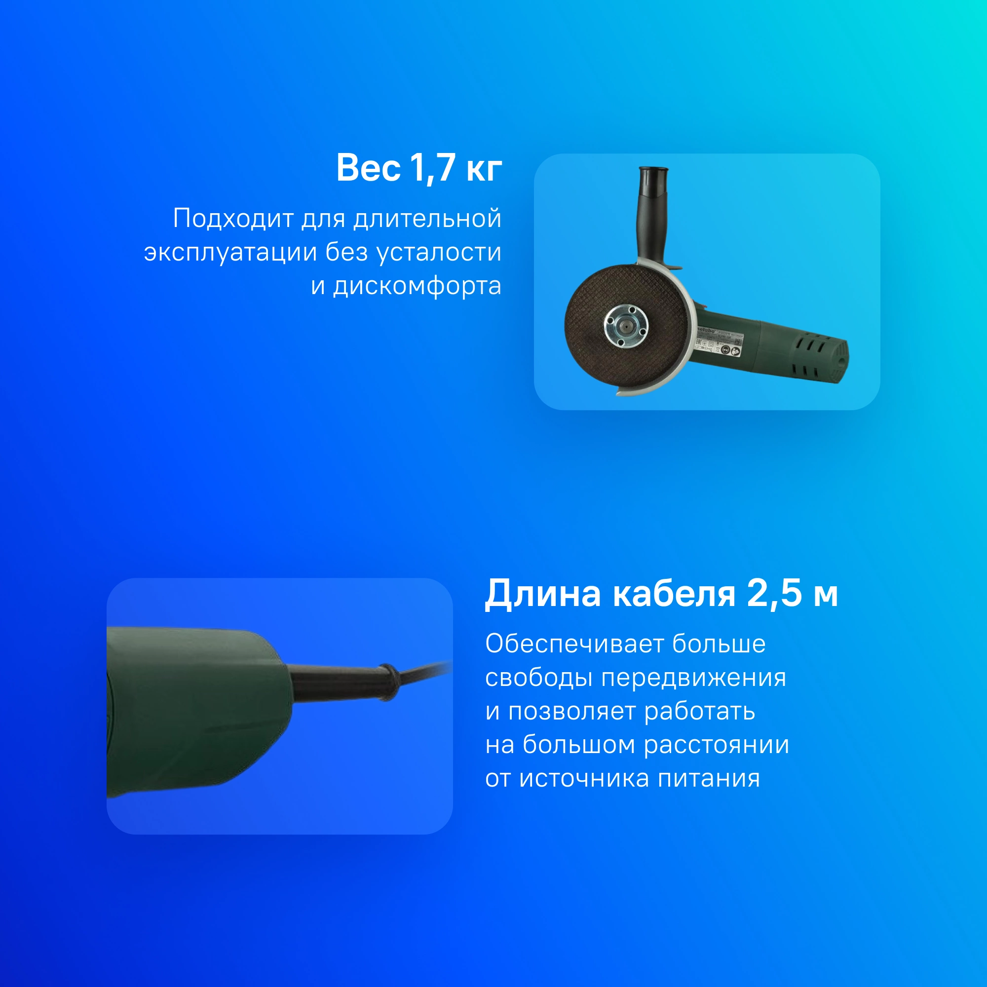 Надежная, универсальная и экономичная: эргономичная угловая шлифмашина для любых задач. Защитный кожух с защитой от проворачивания. Длина кабеля: 2.5м.