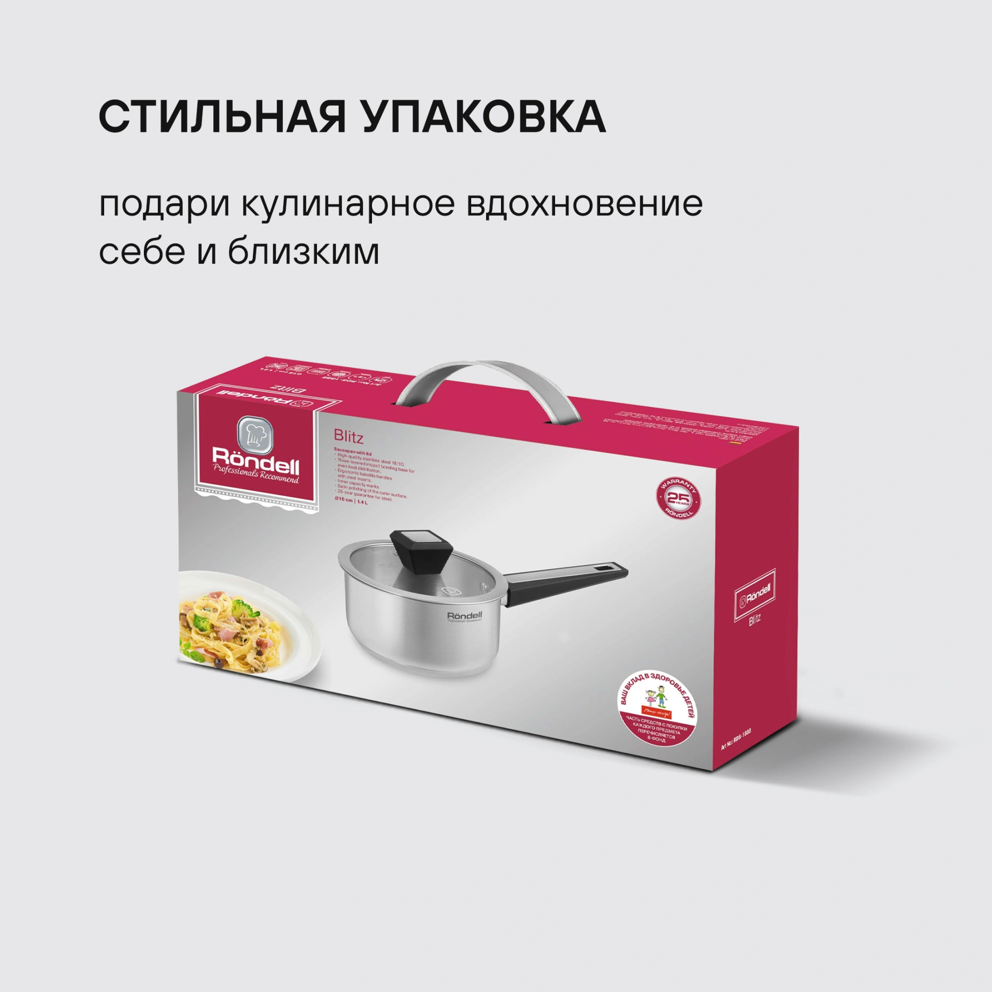 Каждое изделие коллекции Blitz отличается уникальным дизайном и непревзойденным качеством. В коллекции есть ковш выполнен из высококачественной нержавеющей стали — прочного и долговечного материала, который равномерно распределяет тепло по поверхности посуды, гарантируя блюдам превосходный вкус.