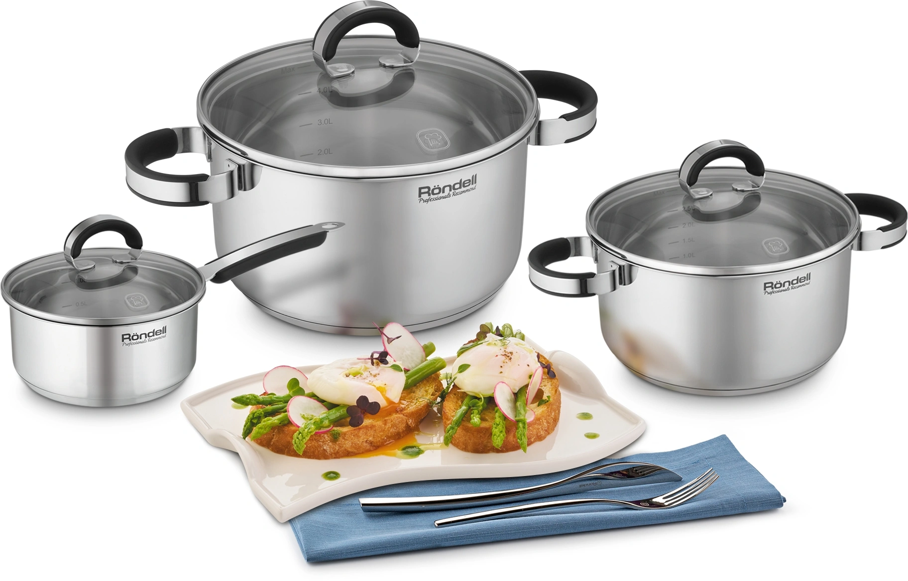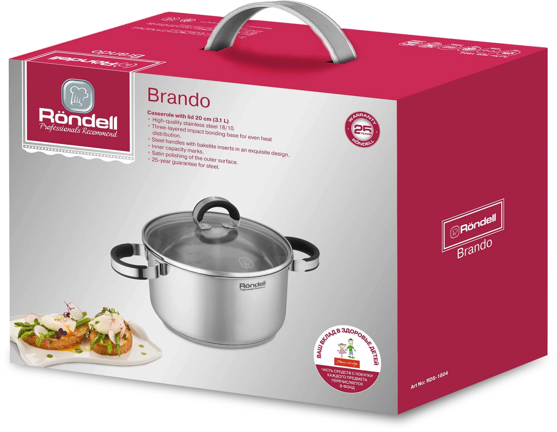 Обратите внимание на ковш коллекции Brando. Крышка из термостойкого стекла с отверстием для выпуска пара и стальным ободком для предотвращения сколов. Подходит для всех видов плит, включая индукционные. Подходит для посудомоечной машины при условии использования неагрессивных моющих средств.