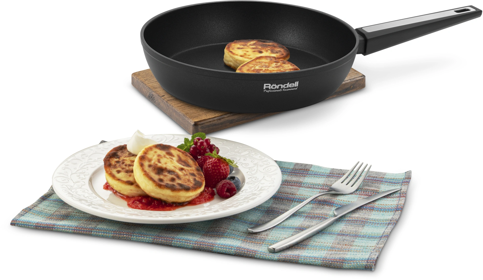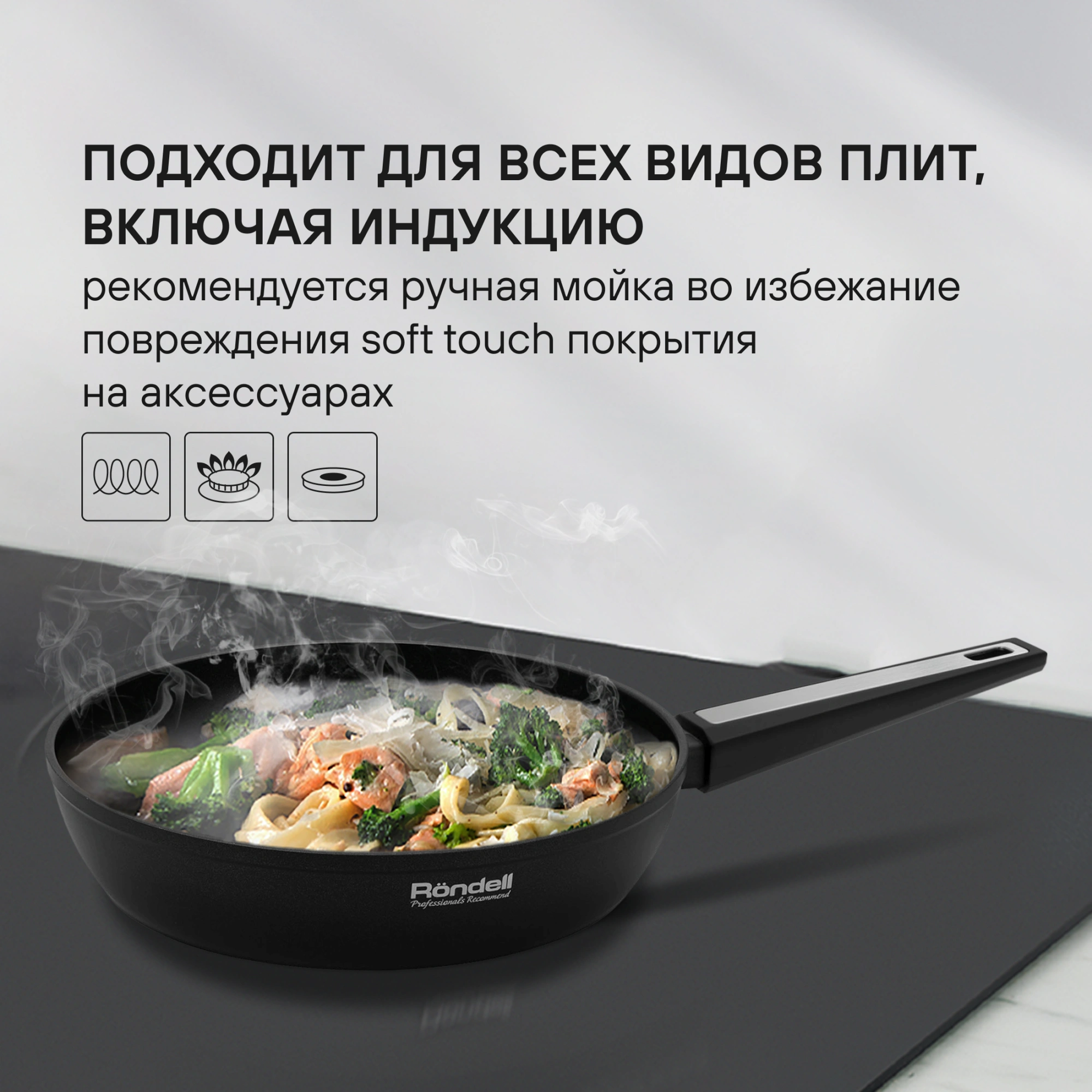 Аксессуары: стильные бакелитовые ручки со стальными вставками. Внешнее термостойкое покрытие для легкого ухода. Прочное внутреннее двухслойное покрытие Xylan® Plus имеет превосходные антипригарные свойства. Не содержит PFOA. Безопасно для здоровья. Нельзя использовать металлические лопатки.