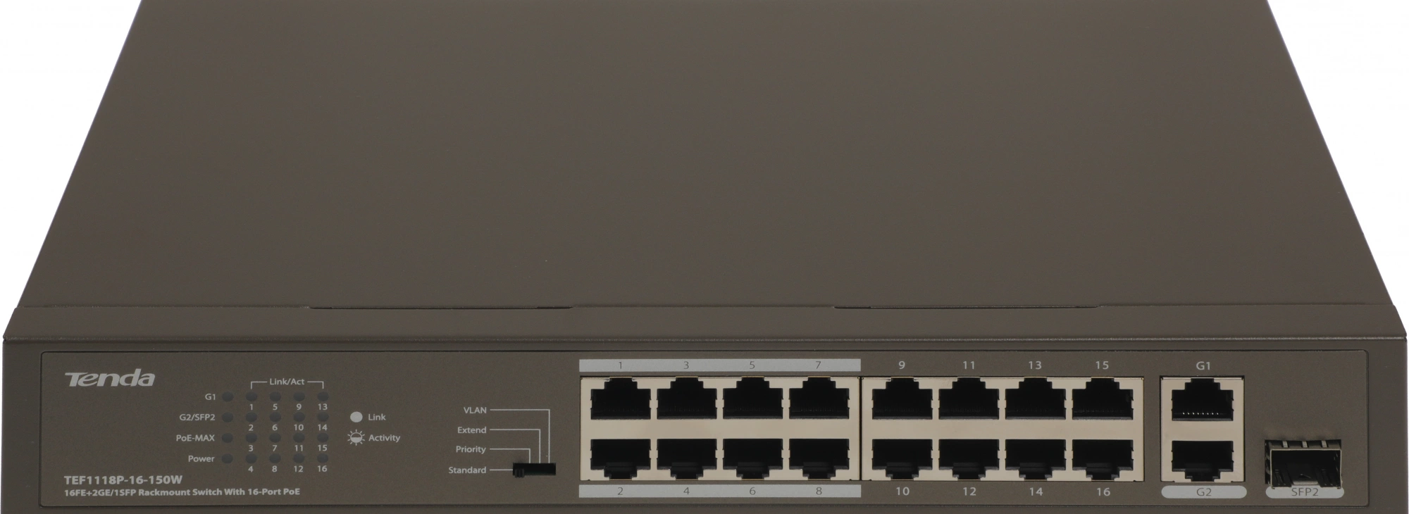 (L2) 16x100Мбит/с 2x1Гбит/с 1SFP 16PoE 130W неупр...