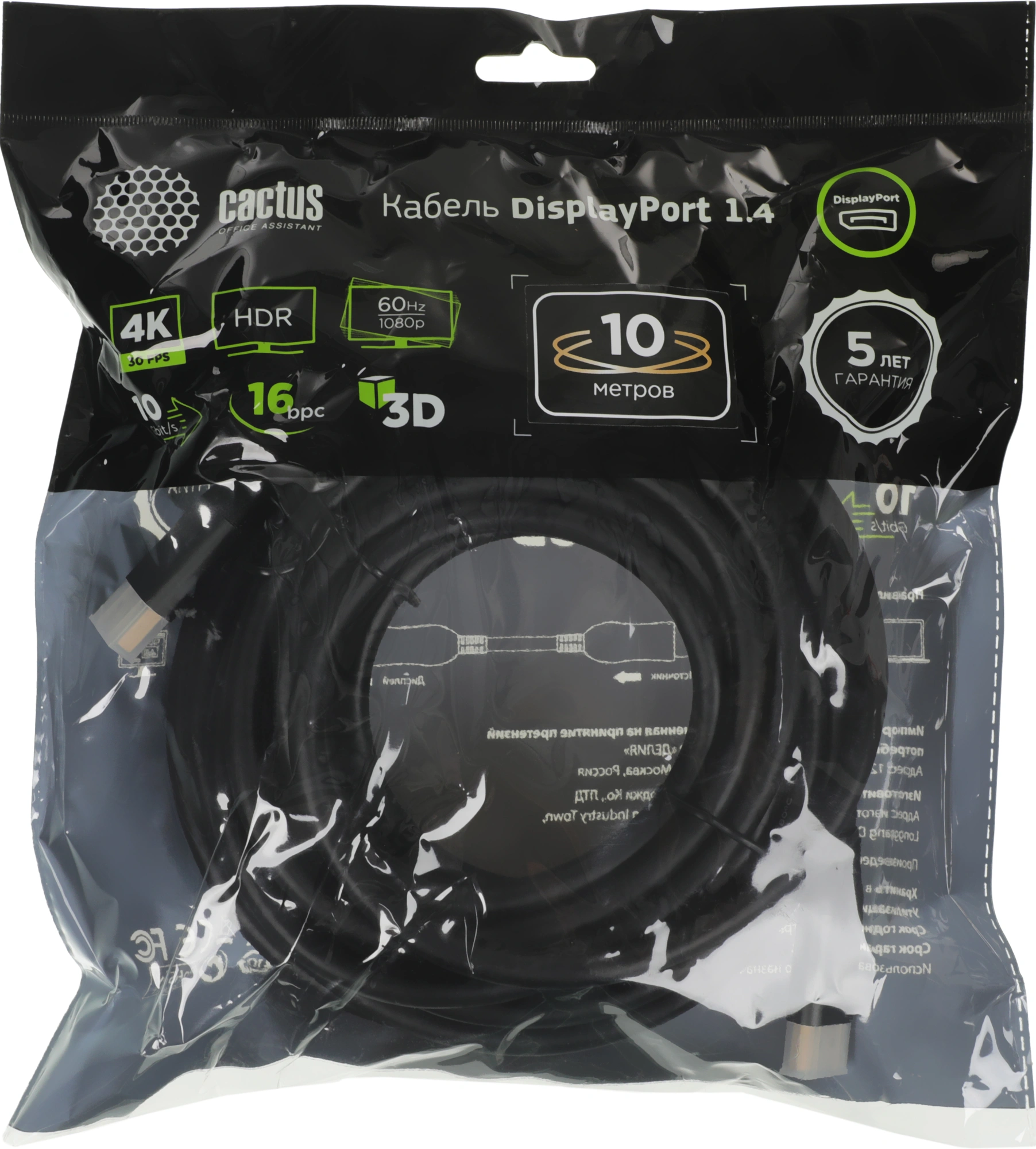 Кабель аудио-видео Cactus CS-DP-DP-1.4-10