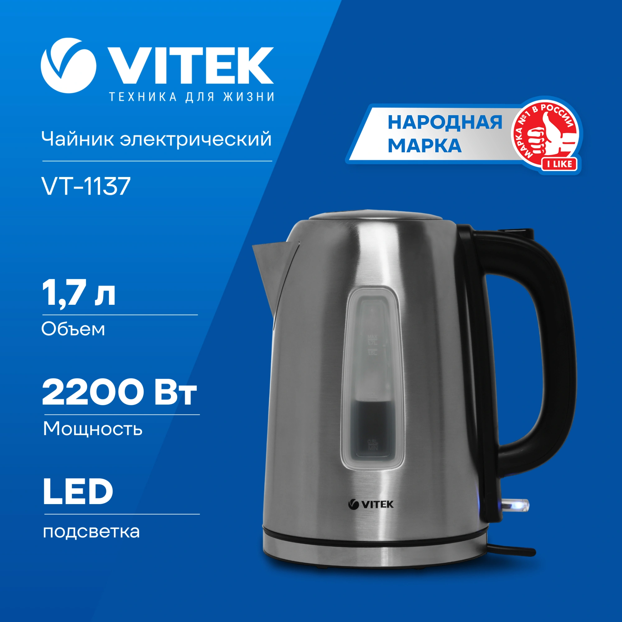 1.7л. 2200Вт серебристый матовый корпус: металл