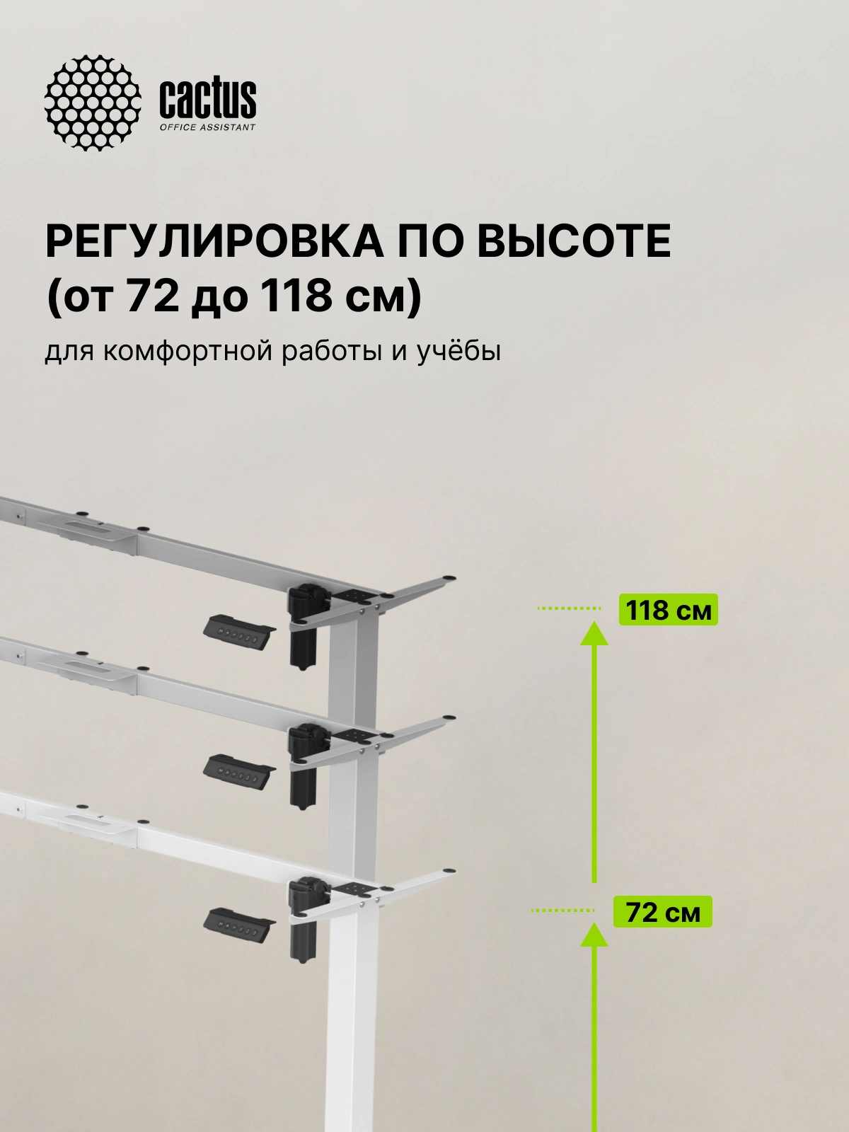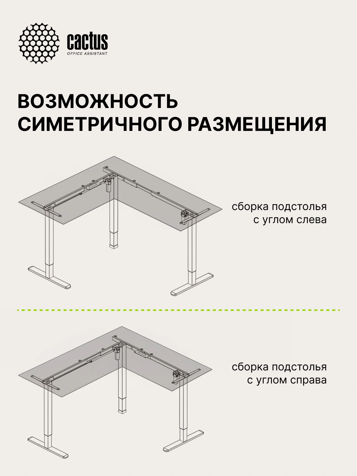 Подстолье Cactus CS-EDXLF-WT с электроприводом это современное решение для организации рабочего места. Подстолье оснащено двумя моторами, опоры состоят из двух сегментов. Модель CS-EDXLF-WT устанавливается как с левым, так и с правым углом, что позволяет пользователю выбрать оптимальное расположение будущего стола. Одна из сторон рамы имеет регулировку по длине: от 105 до 150 см, что очень удобно при выборе уникального размера столешницы.