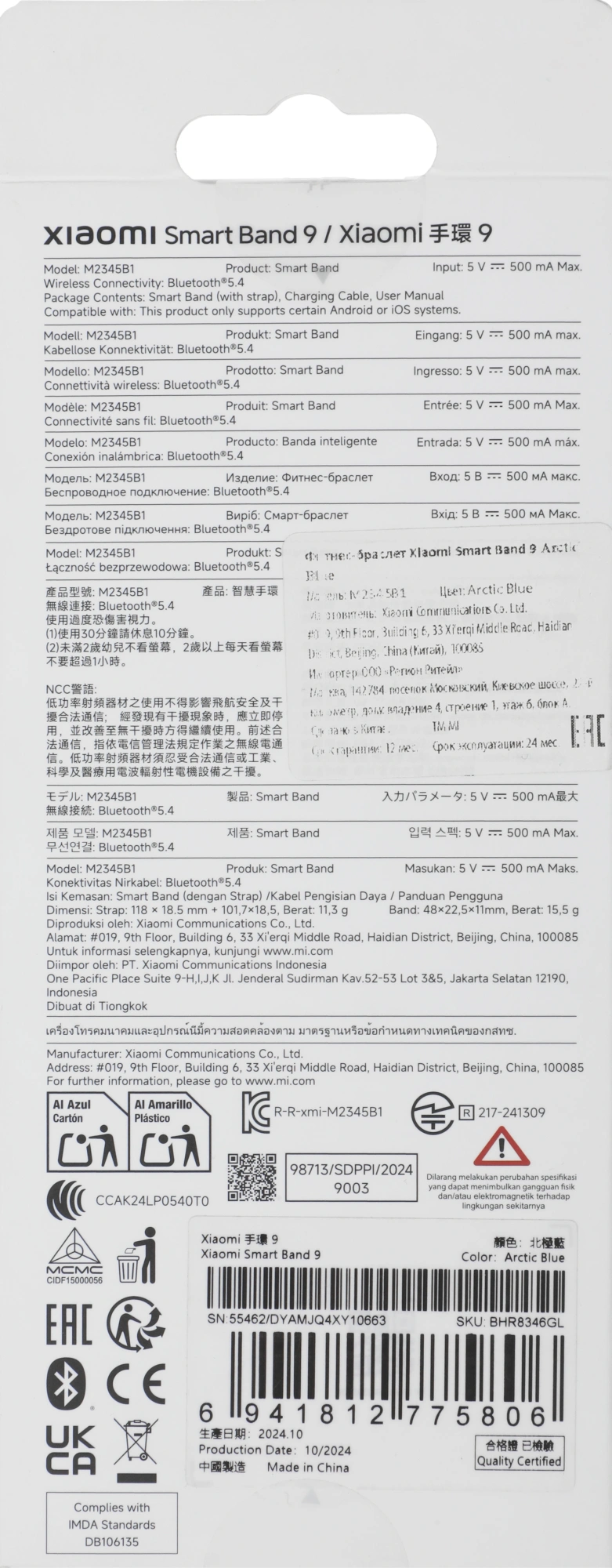 Фитнес-трекер Xiaomi Smart Band 9 AMOLED корп.:синий рем.:синий (BHR8346GL )