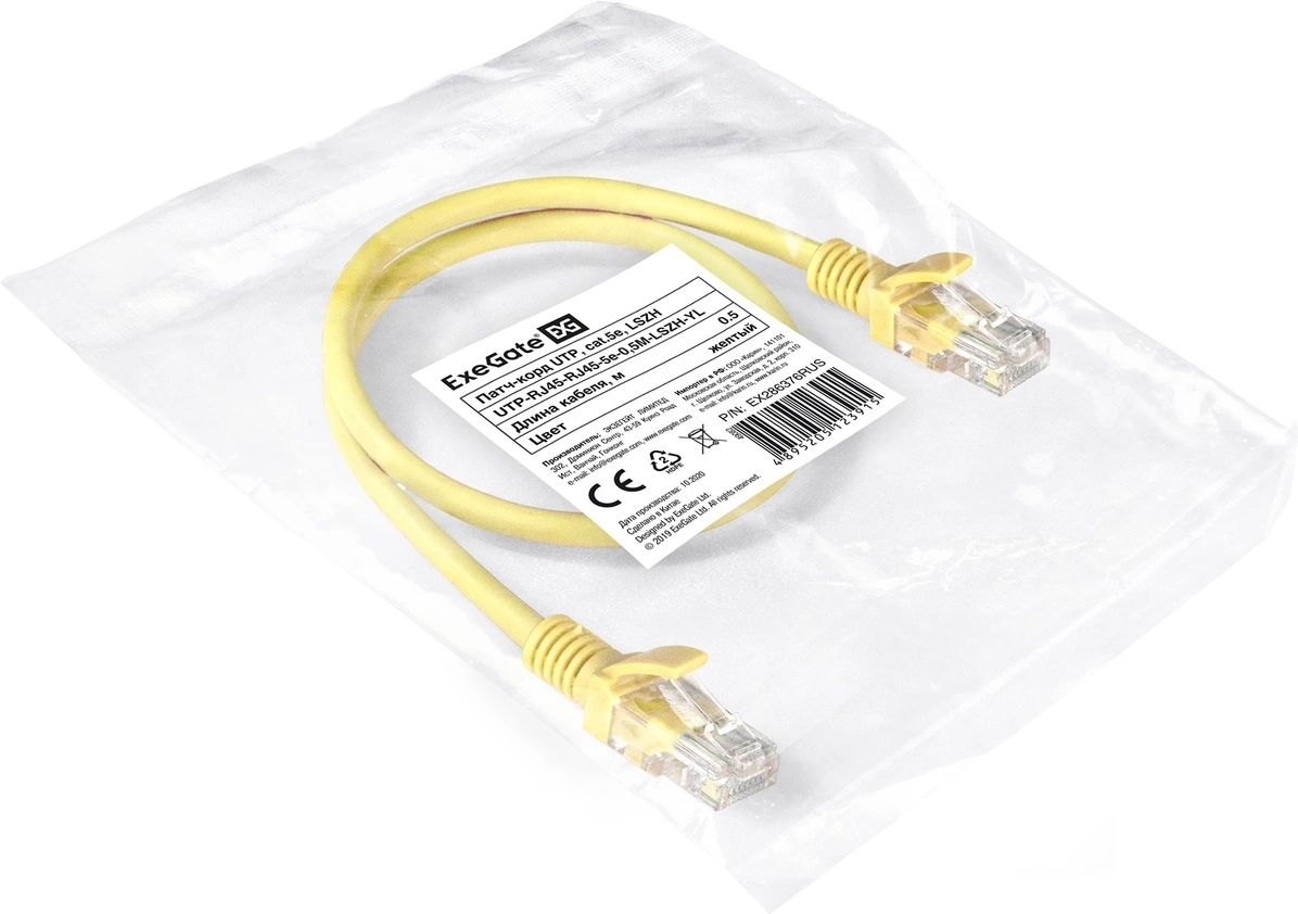 Патч-корд Exegate UTP-RJ45-RJ45-5e-0,5M-LSZH-YL