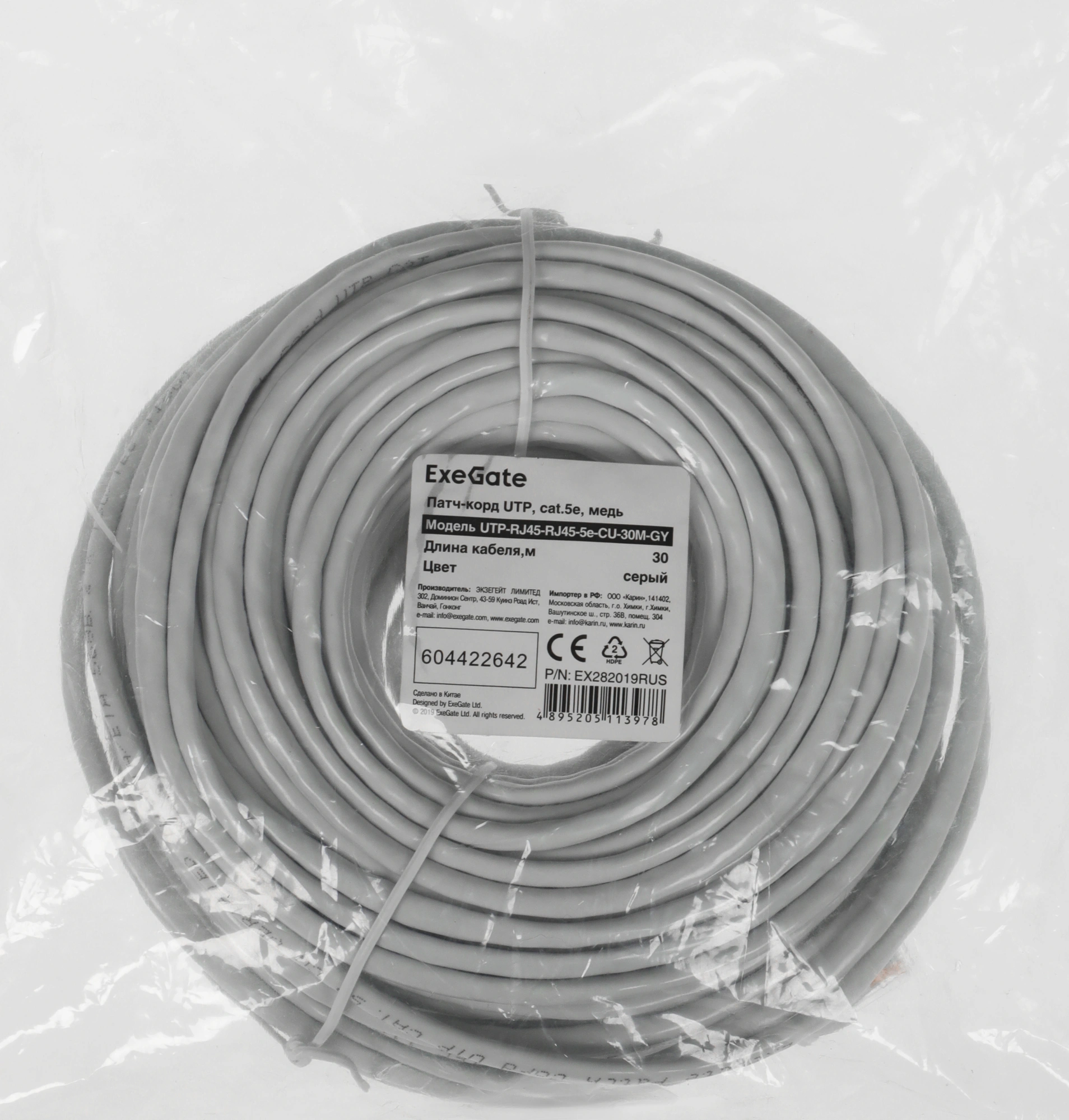 Патч-корд Exegate UTP-RJ45-RJ45-5e-CU-30M-GY