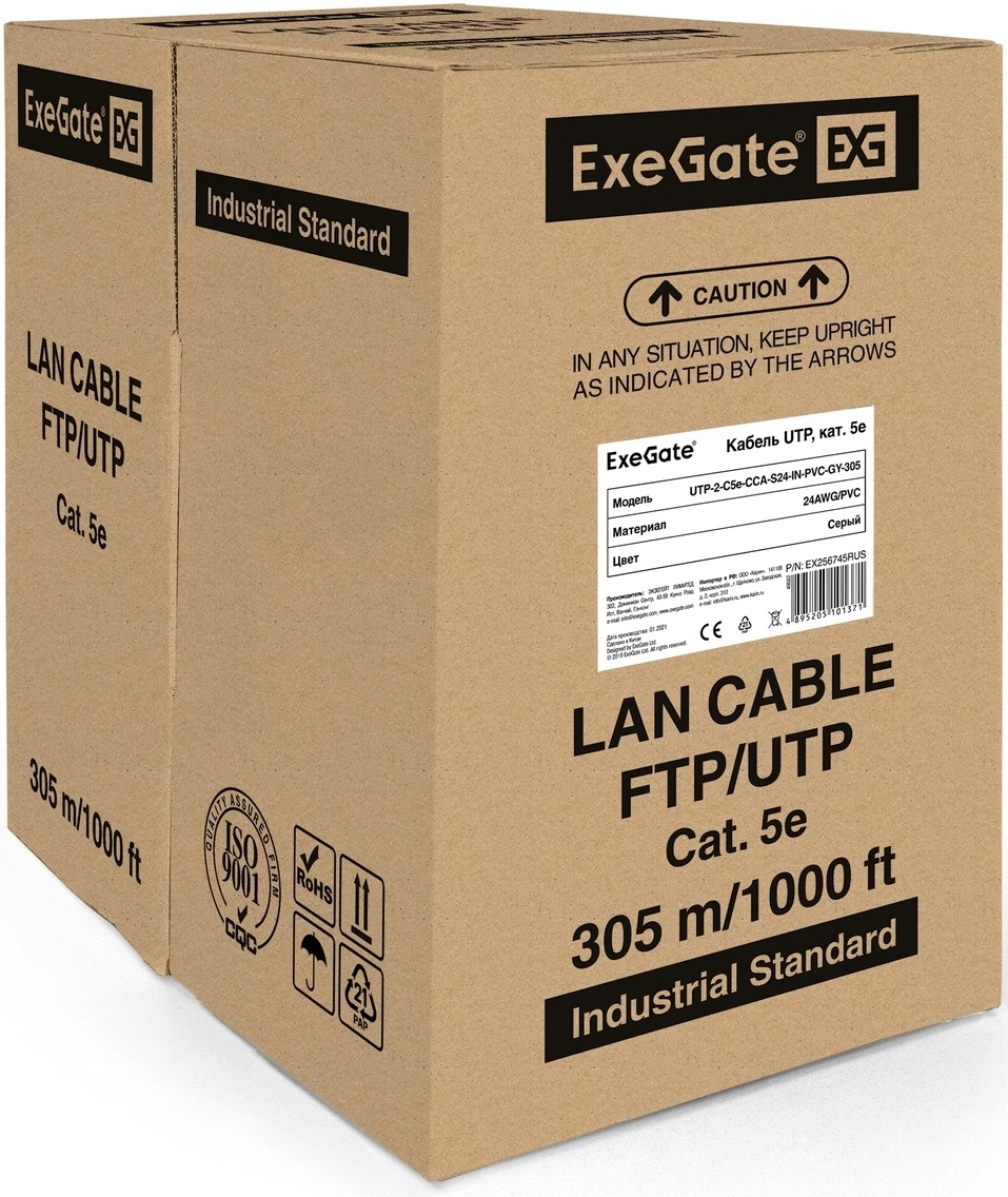 1Гбит/с UTP 2 пары cat.5E solid CCA 305м серый (EX...