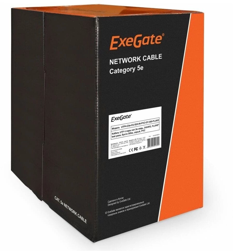 Кабель Exegate UTP4-C5e-CU-S24-IN-PVC-GY-305-FLUKE UTP