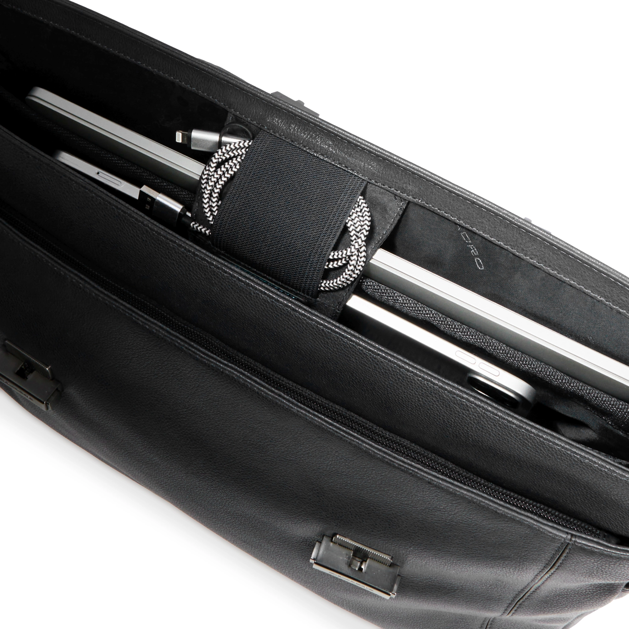 Кожаный портфель для ноутбука с отделением для iPad®Pro диагональю 12,9 дюйма, защитой от подделок и амортизацией.