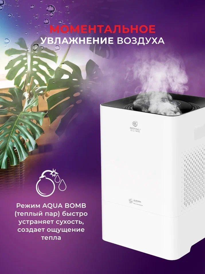 датчик уровня воды, дисплей, таймер, функция ароматизации воздуха