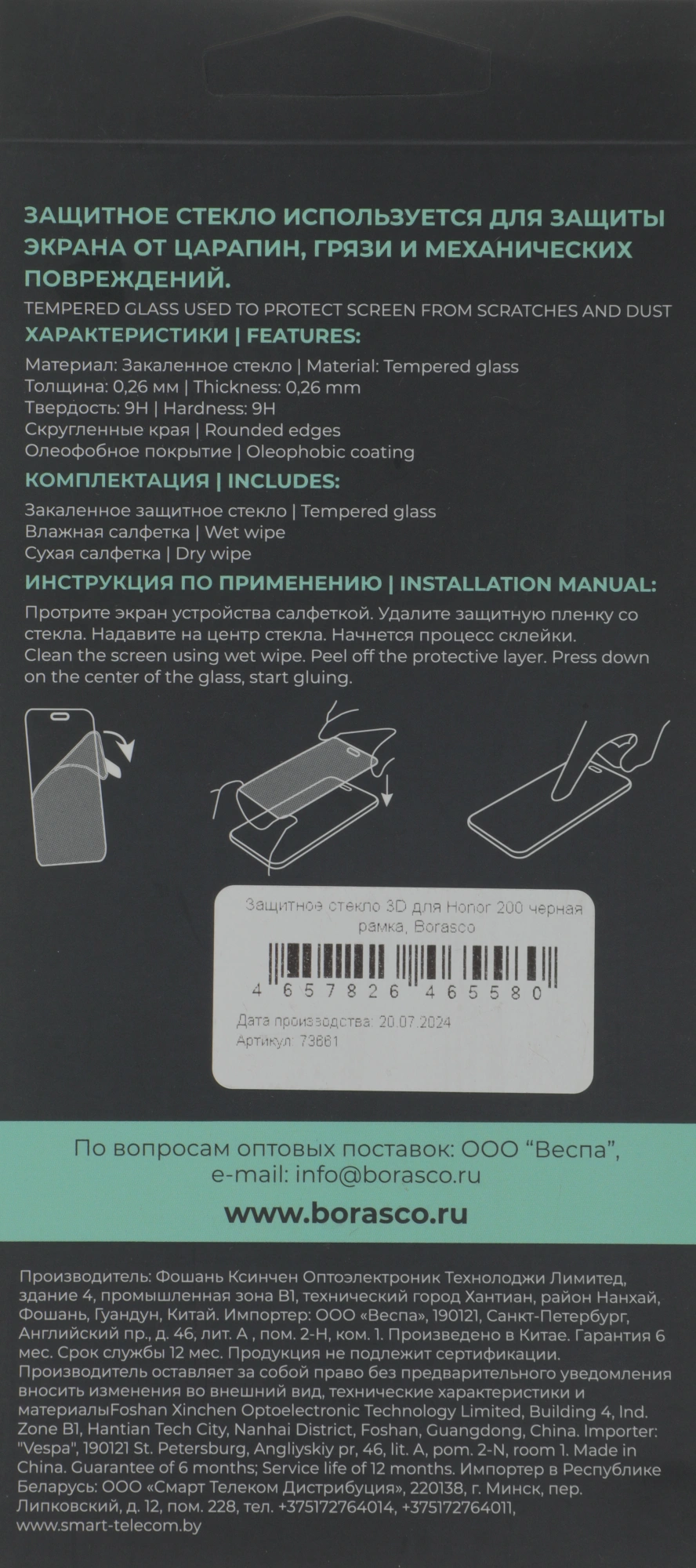 Закалённое стекло Borasco предназначено для защиты экрана при падении, от царапин и потёртостей, олеофобное покрытие стекла передаёт приятные тактильные ощущения.
